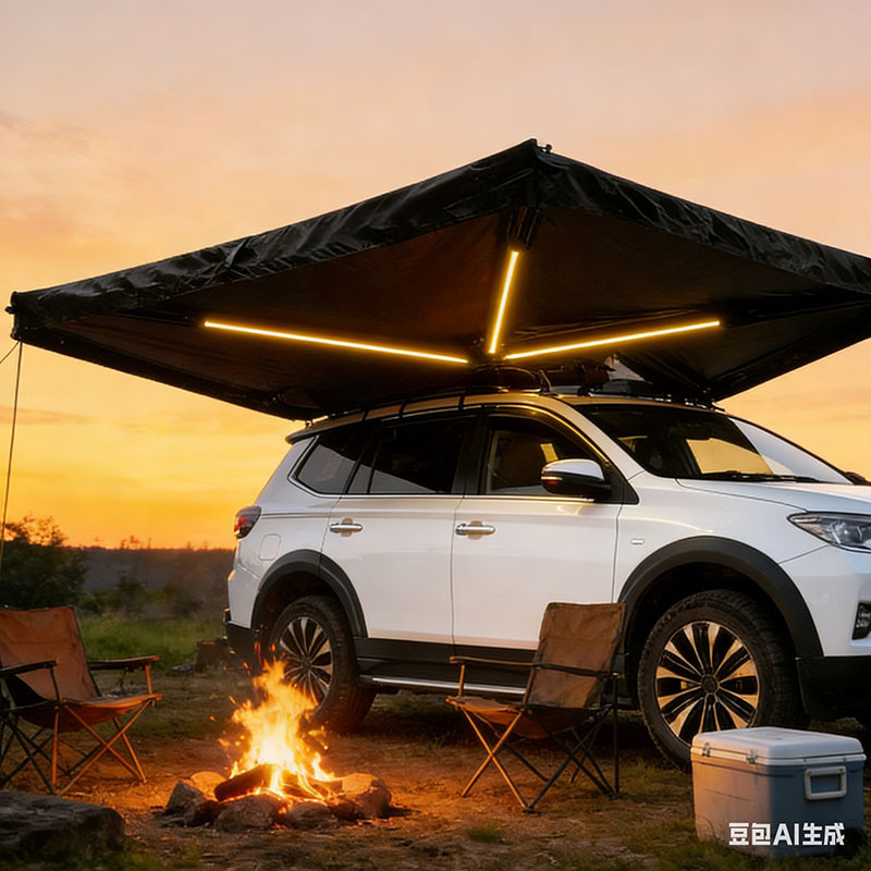 차량용 270도 팬형 캠핑 텐트 SUV 캠핑용 알루미늄 합금 자외선 차단 및 방수 차량용 캠핑 텐트 측면 차양막
