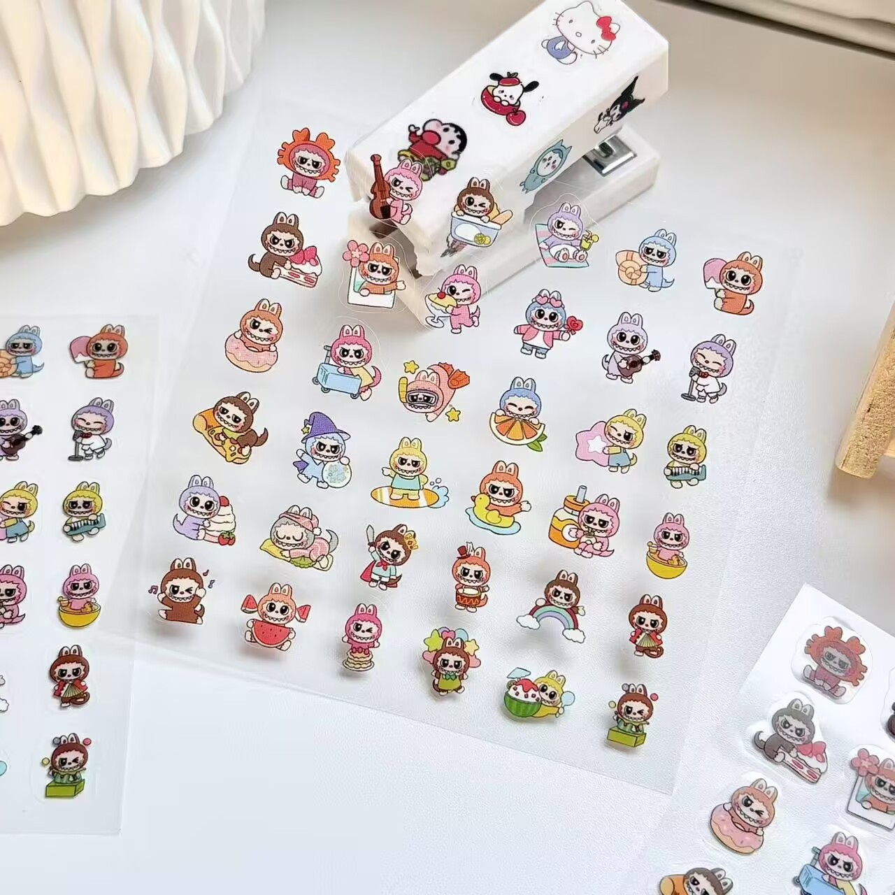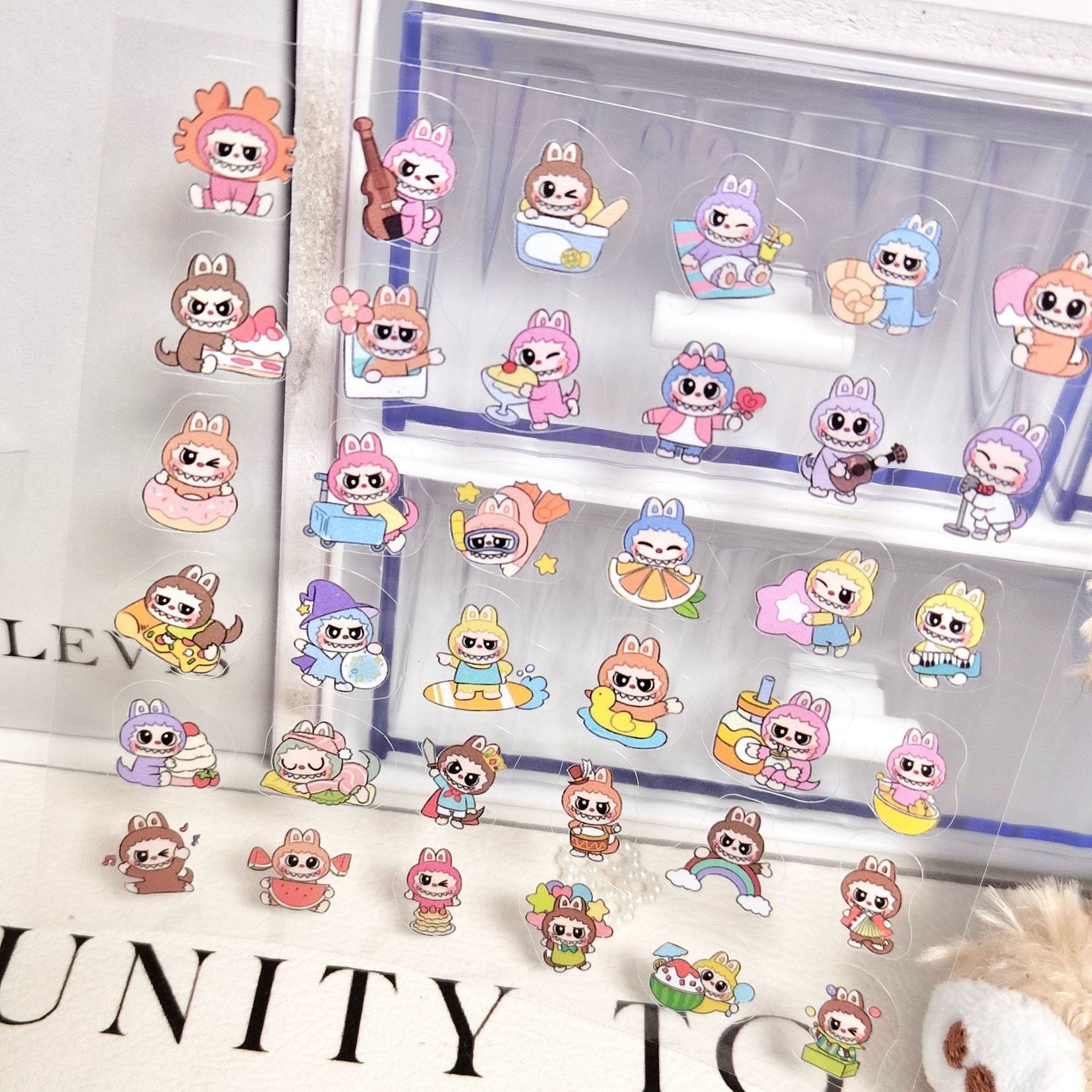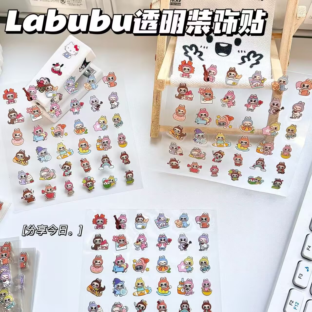 원래 새로운 라부 스티커 슈퍼 귀여운 만화 투명 diy 스티커 고가치 학생 재료 장식 스티커