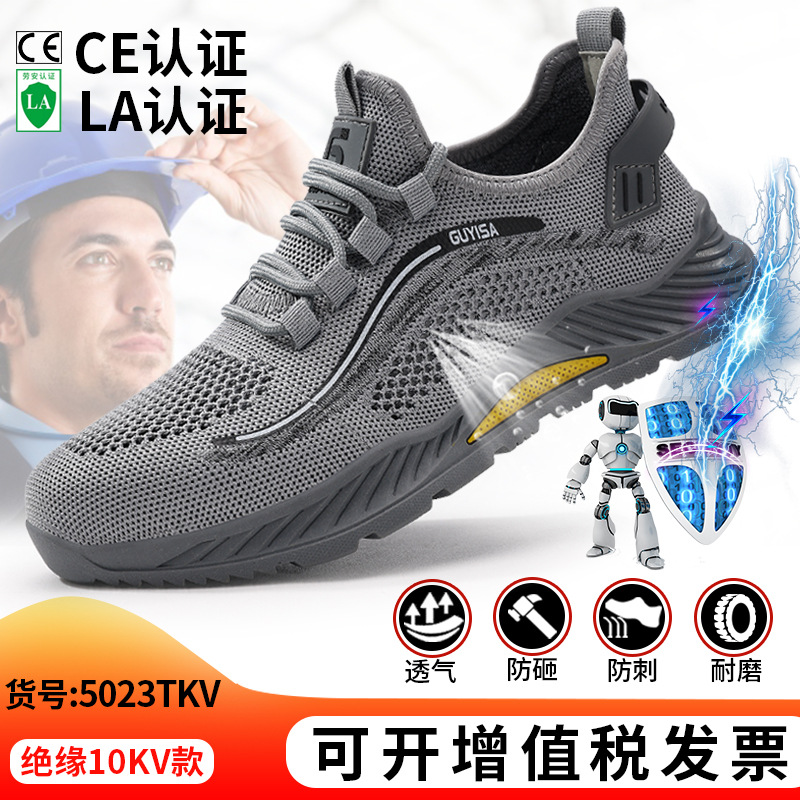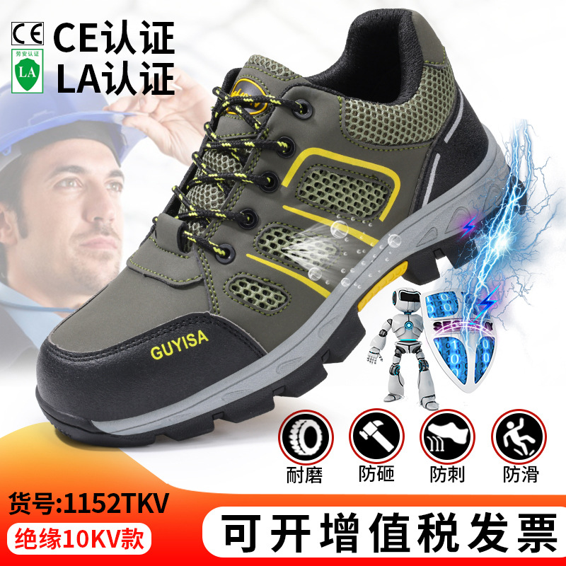 여름 절연 신발 10KV 노동 보호 신발, 충격 방지, 펑크 방지, 내마모성 플라스틱 발가락 안전 신발, 통기성 남성 및 여성 전기 신발