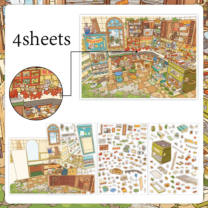 인필미 오늘도 영업 중 12번째 대형 3D 풍경 스티커 이우 모옌 문화용품
