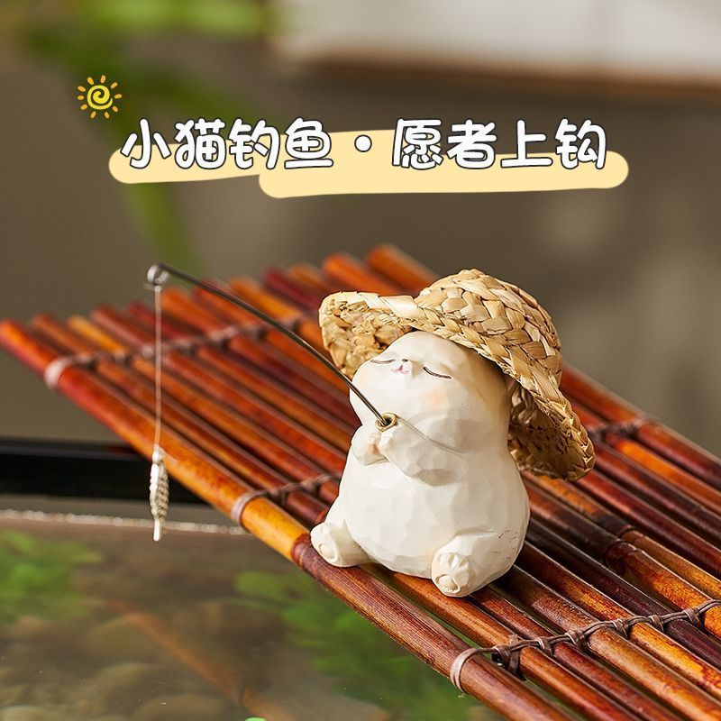 小猫钓鱼摆件可爱动物治愈桌面装饰品女生生日礼物