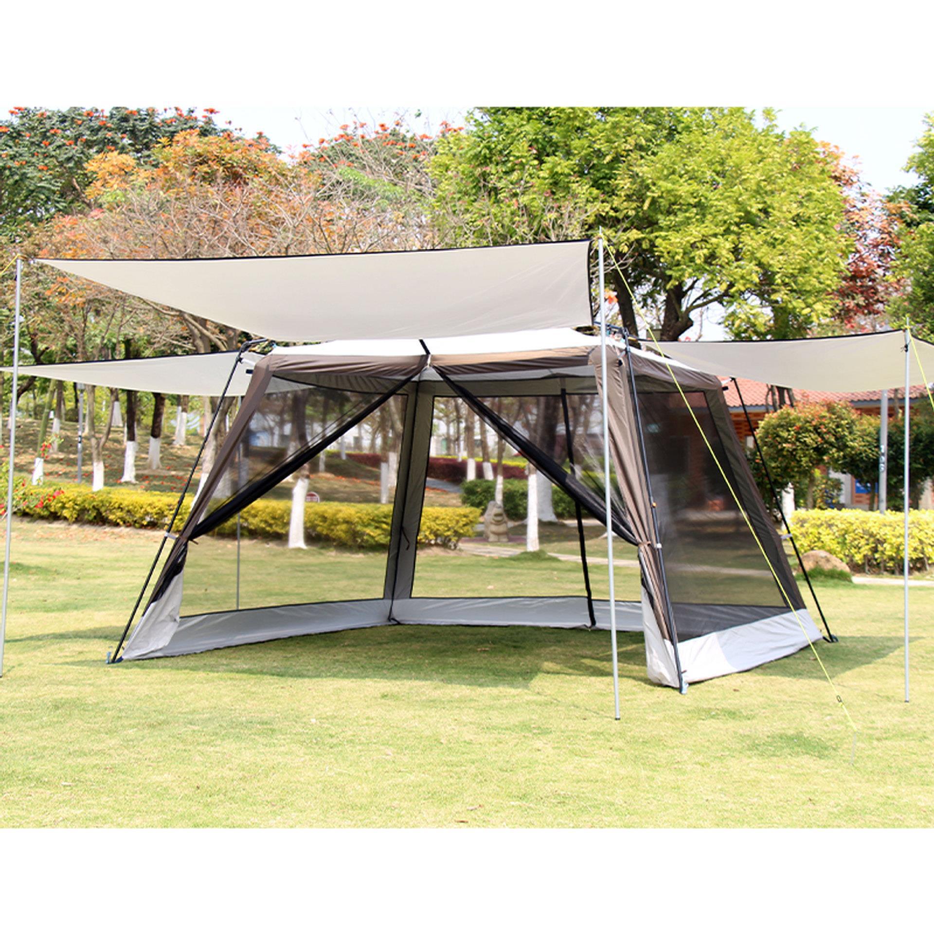 야외 캐노피 텐트 자동 알루미늄 폴 캠핑 방수 실버 접착제 태양 보호 해변 모기장 비닐 파빌리온 천막스토어 가기