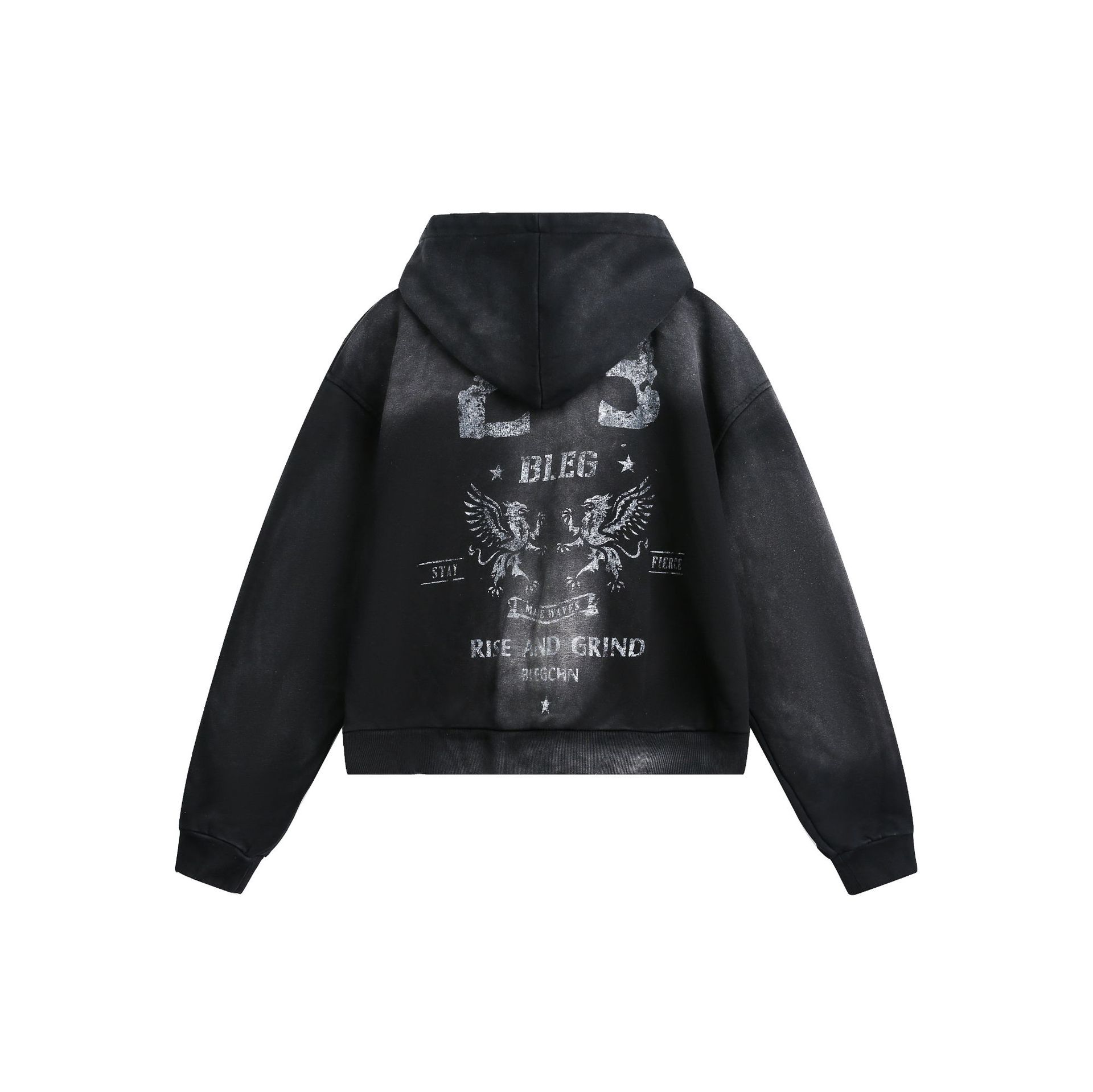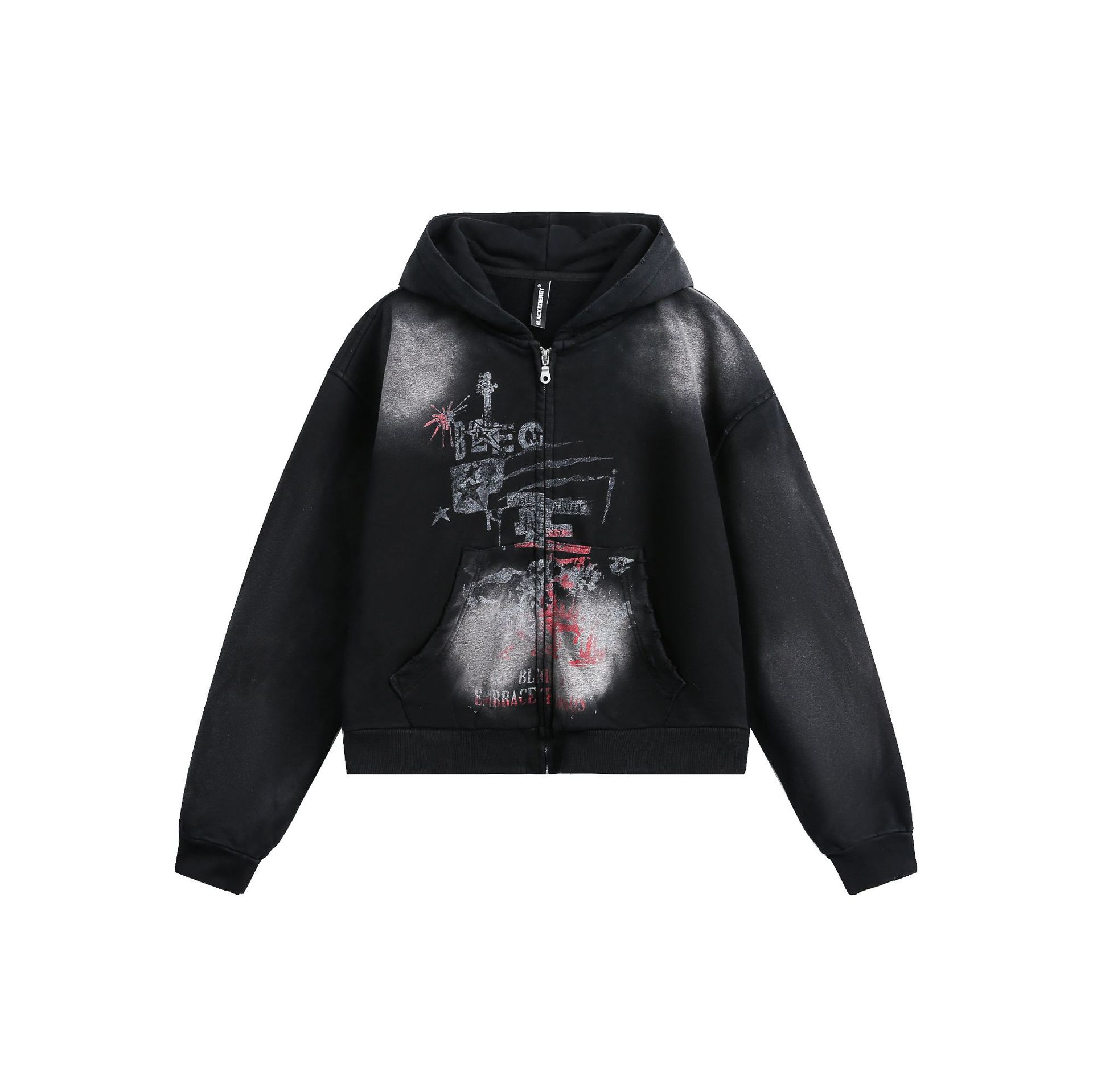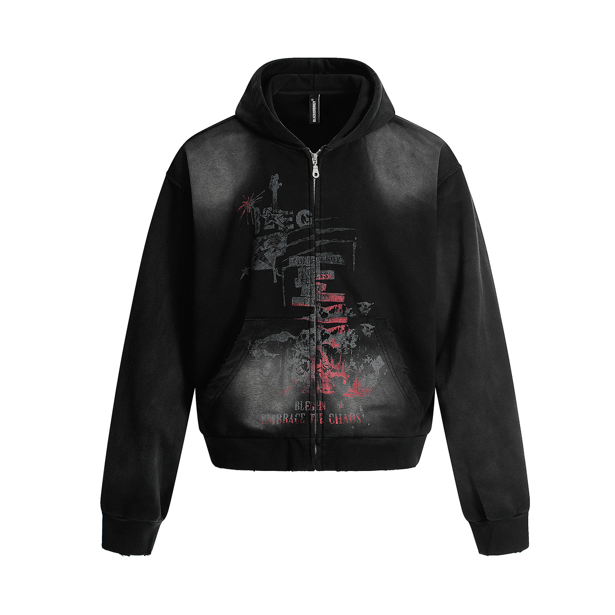 Jiayiku 남성복 2025 가을 후드티 아메리칸 스트리트 힙합 트렌디 브랜드 Wasteland Fengshui 워시 카디건 스웨트 남성 및 여성용