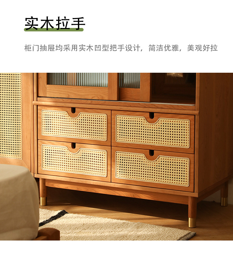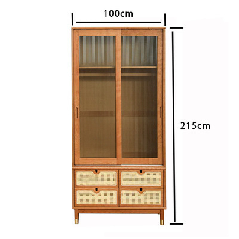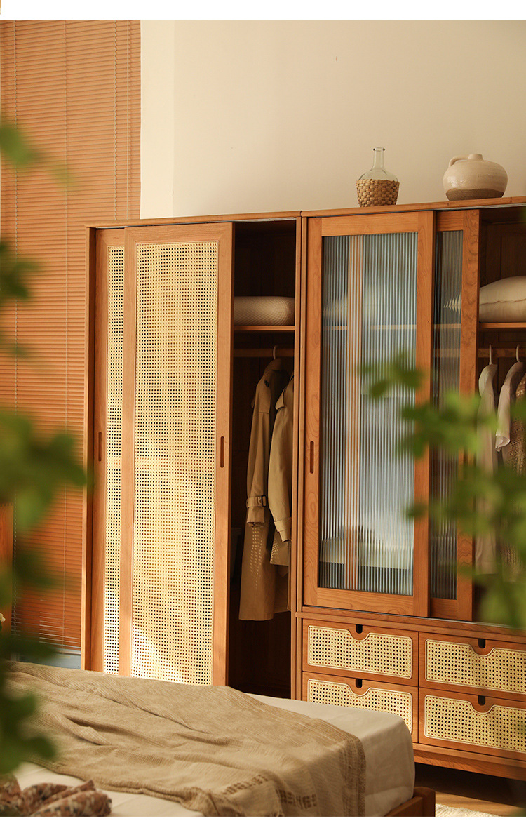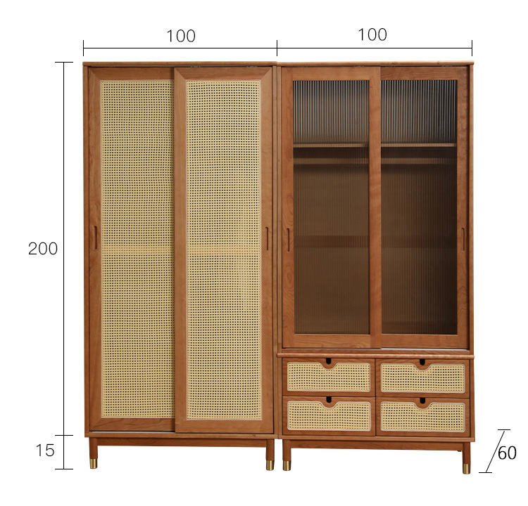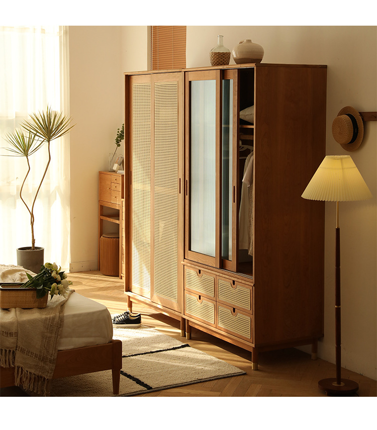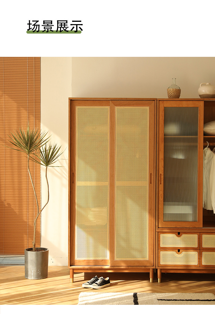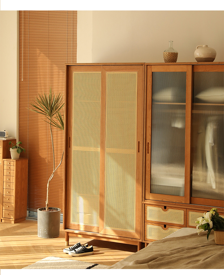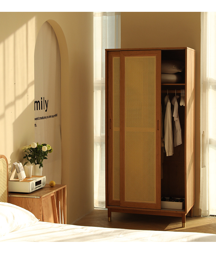 북유럽 단단한 나무 옷장 홈 침실 등나무 슬라이딩 도어 옷장 아파트 현대 간단한 단단한 나무 스윙 도어 옷장