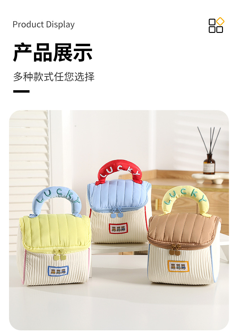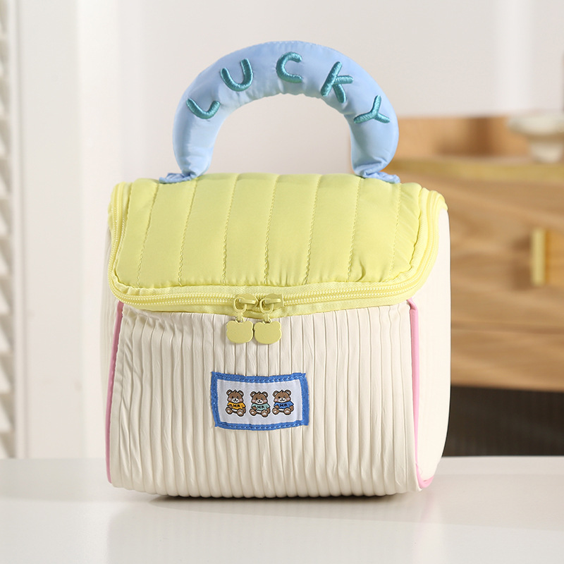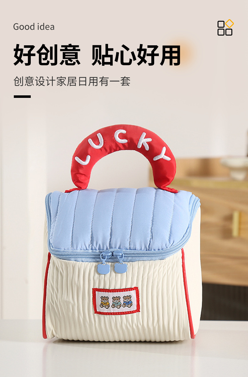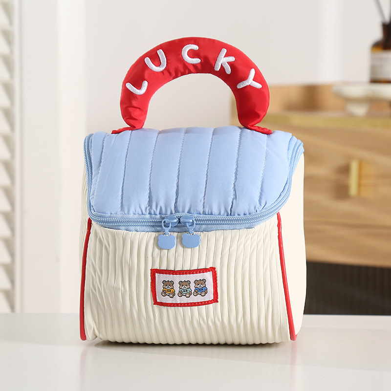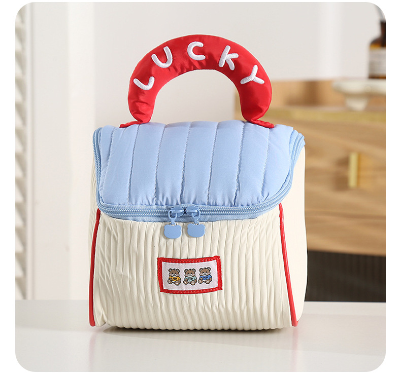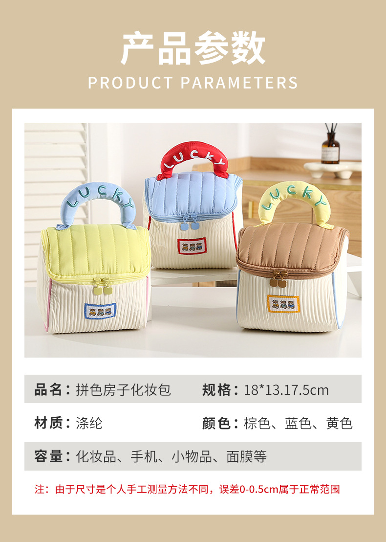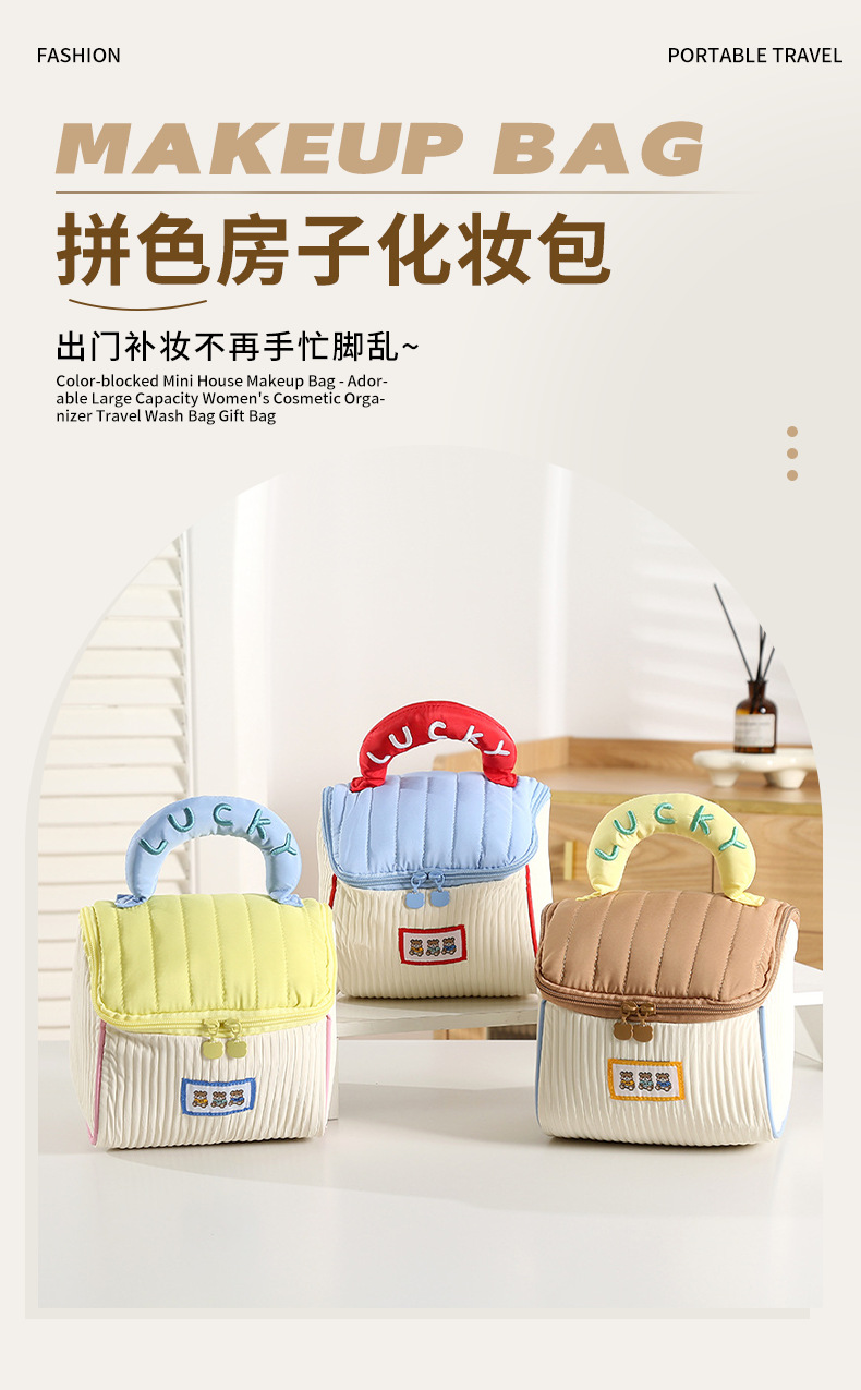 컬러 매칭 소형 하우스 화장품 가방, 귀여운 대용량 여성용 화장품 수납 가방, 여행용 세면도구 가방, 기념품 가방스토어 가기