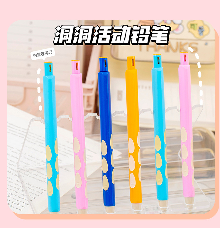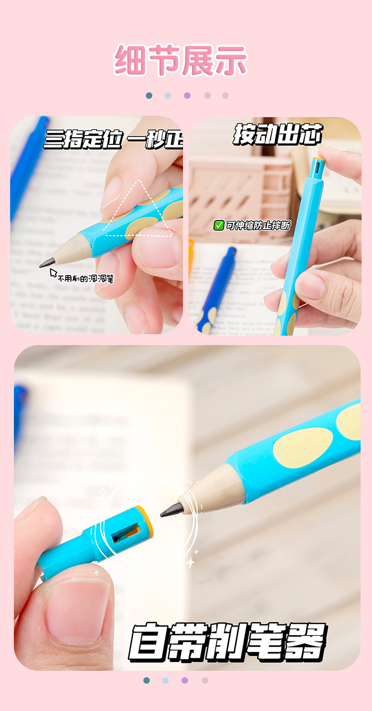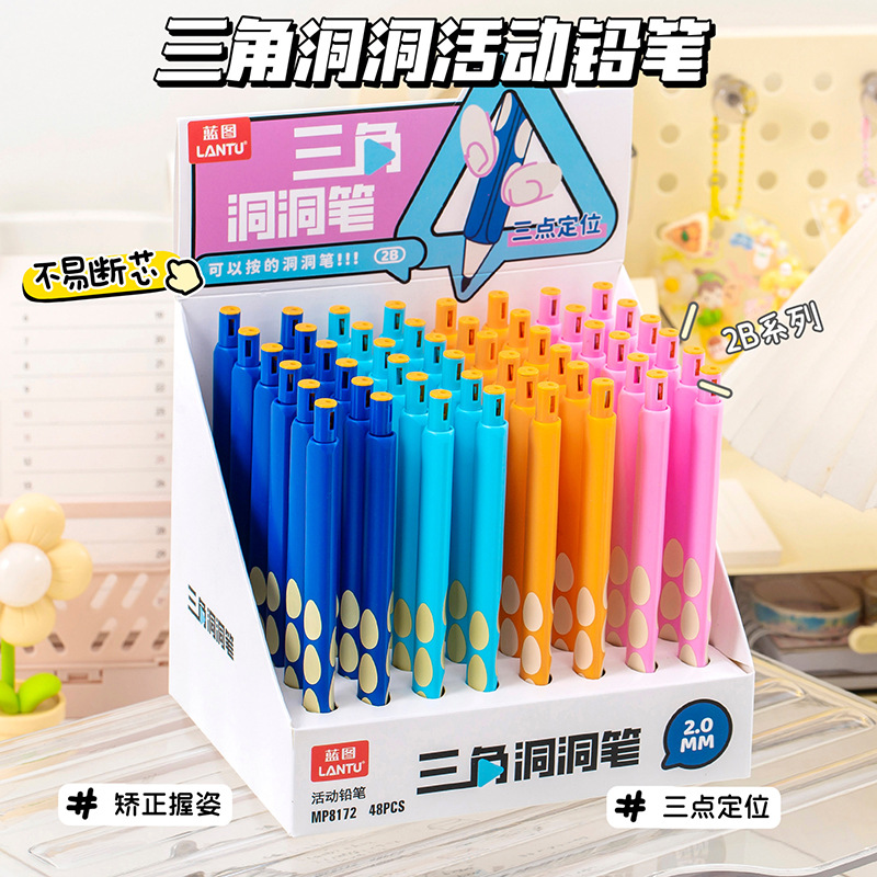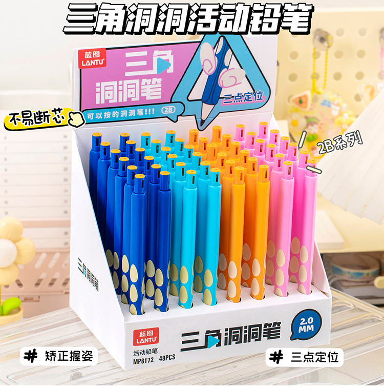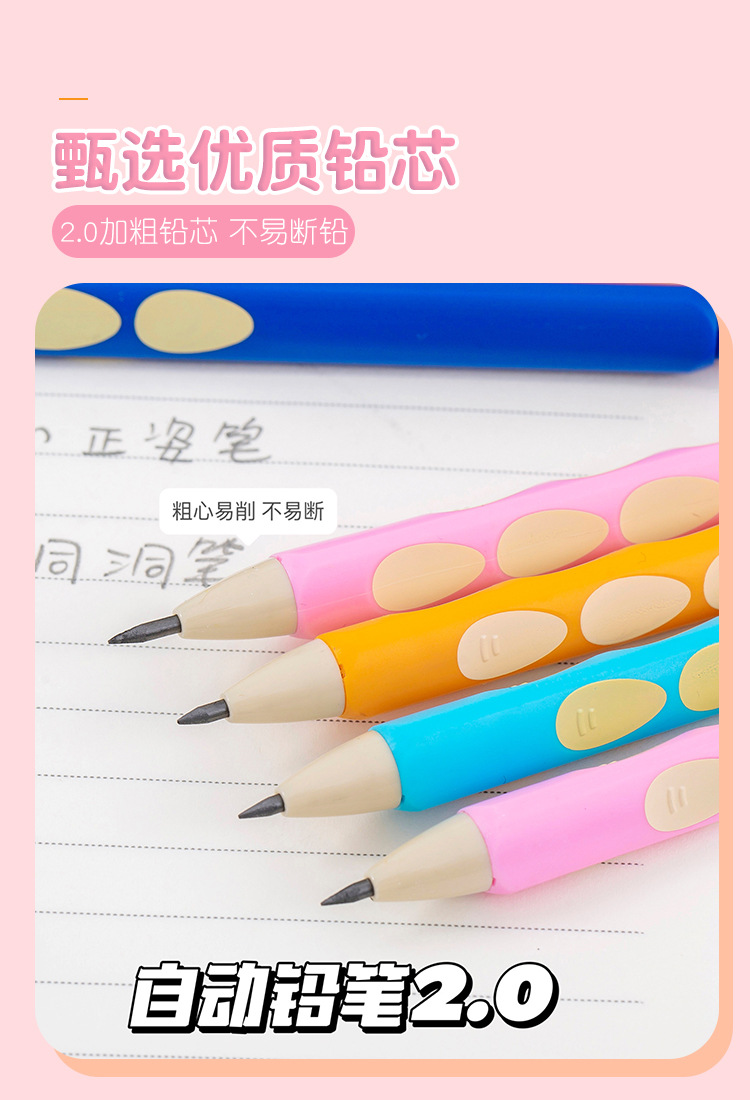 블루 프린트 자동 연필 2.0 두꺼운 심 초등학생을 위한 무독성 심, 깎지 않은 모양 교정 모조 나무 구멍 연필스토어 가기