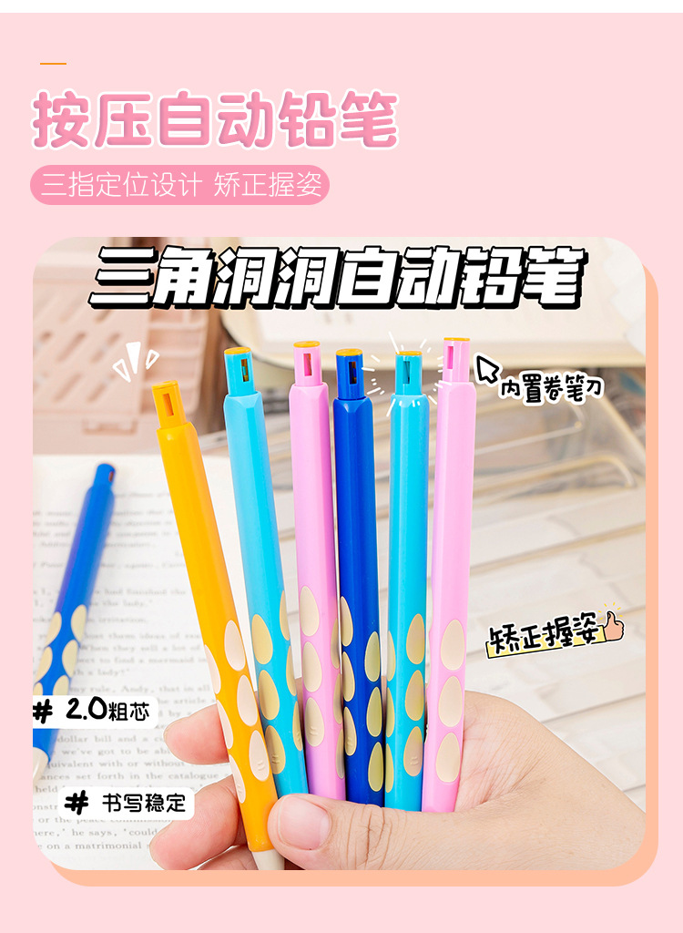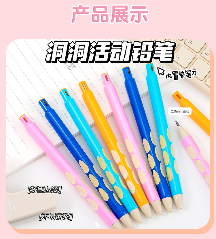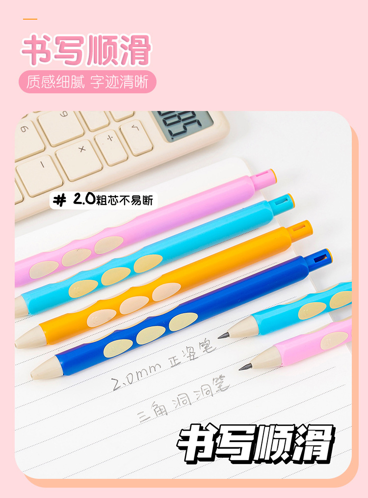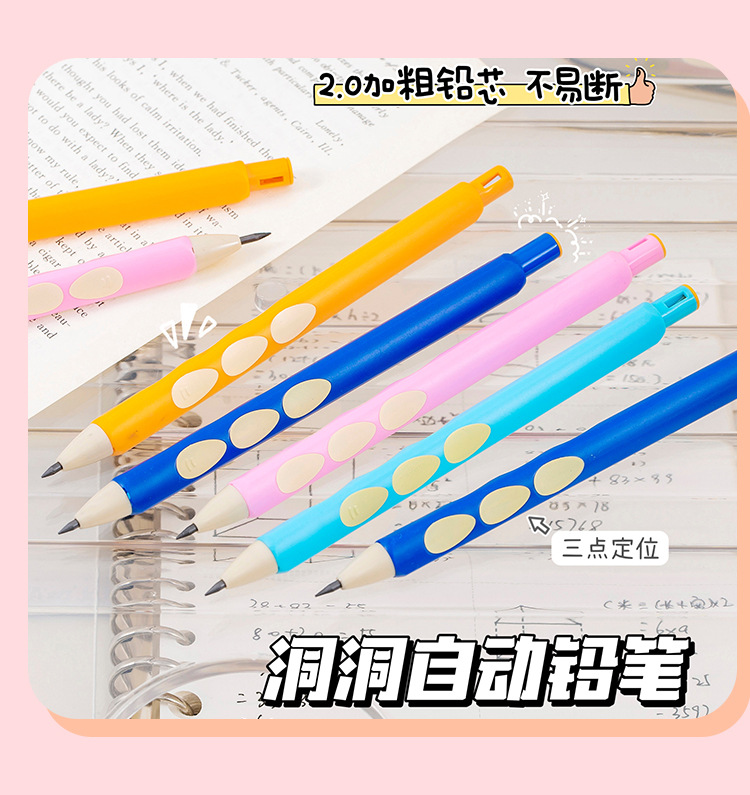 블루 프린트 자동 연필 2.0 두꺼운 심 초등학생을 위한 무독성 심, 깎지 않은 모양 교정 모조 나무 구멍 연필