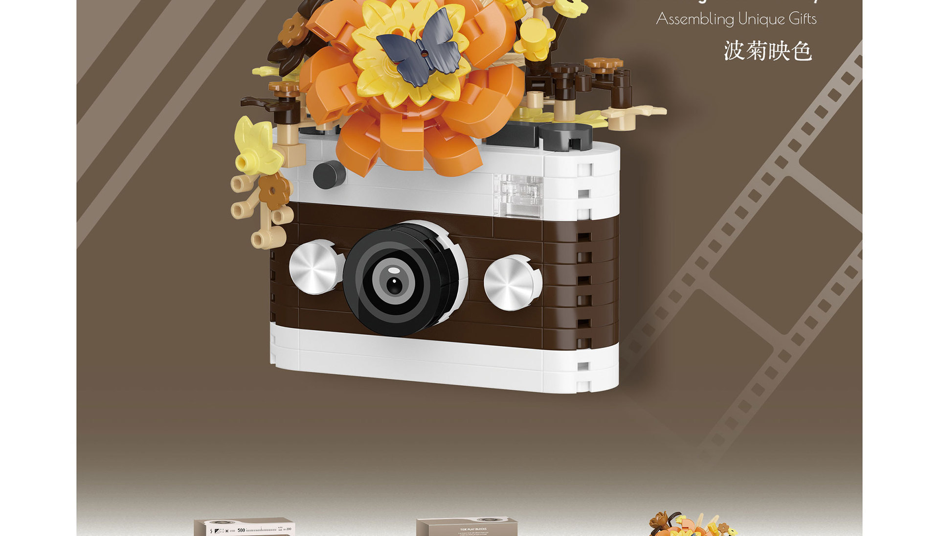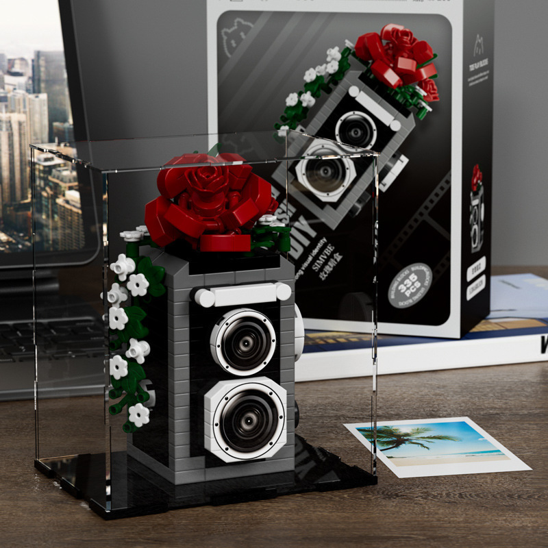 레고 SLR 카메라 모델 빌딩 블록 꽃 장식품 어린이 교육 조립 장난감 선물과 호환되는 국경 간 미세 입자스토어 가기
