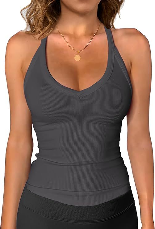 2025 유럽과 미국의 국경 간 여성용 골지 조끼 여름 기본 섹시 슬림 슬링 V 넥 외출 조끼스토어 가기