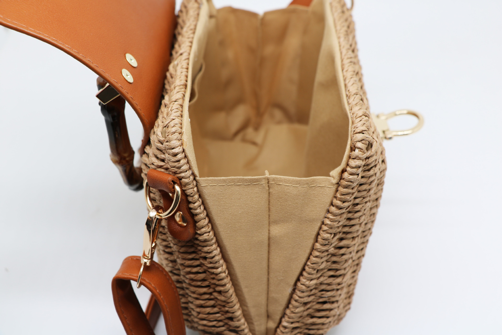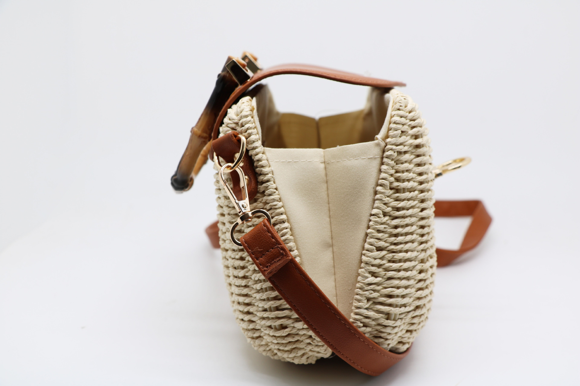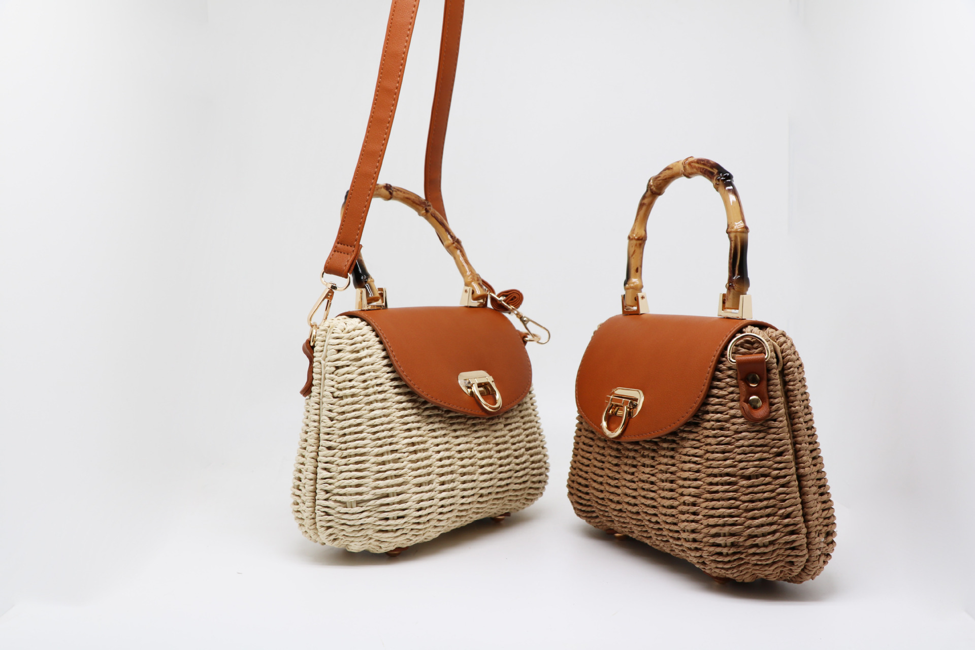 여성을위한 새로운 여름 해변 손으로 짠 가방 종이 로프 프레임 암소 코 잠금 캔디 가방 대각선 밀짚 가방 도매스토어 가기