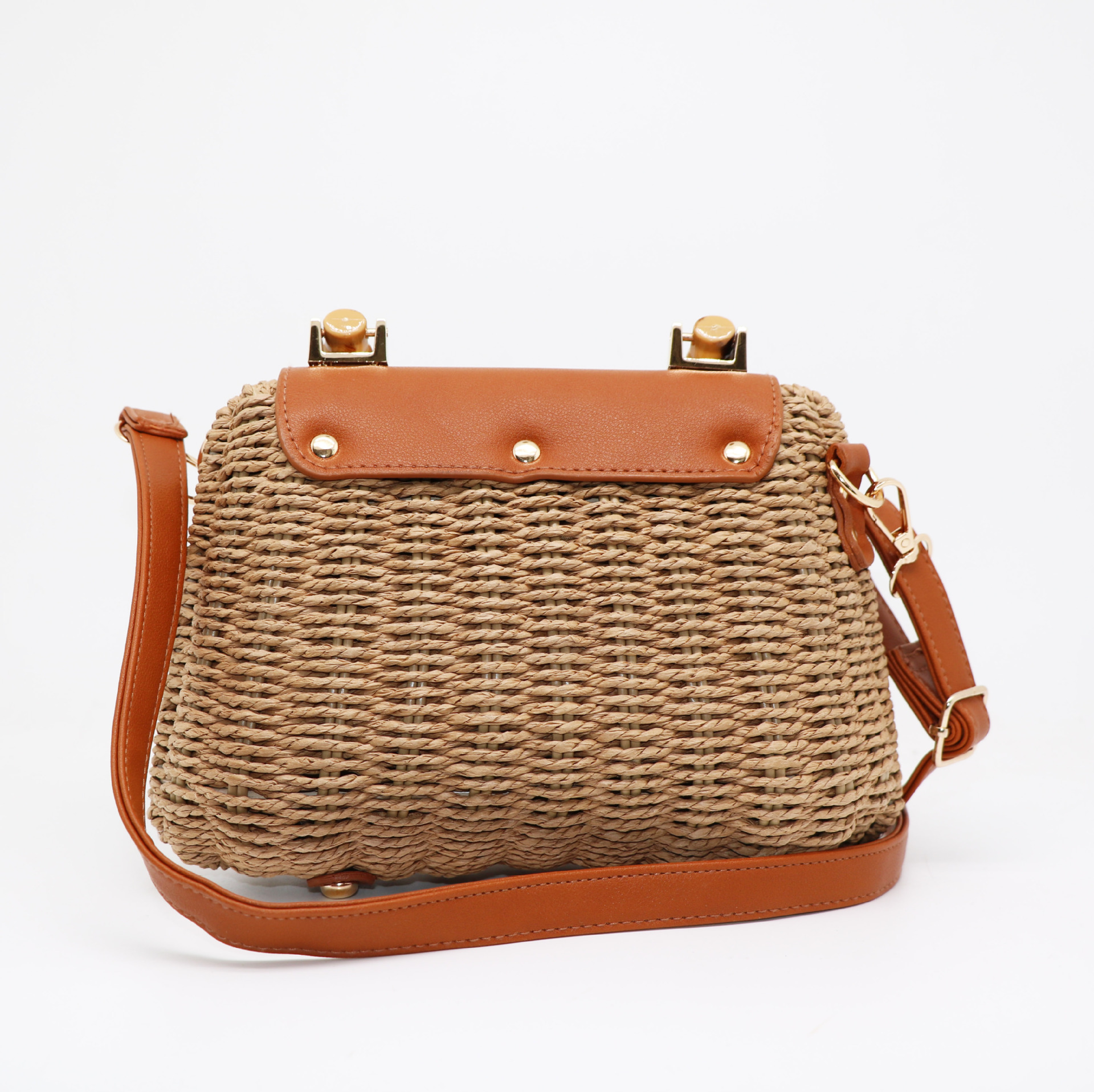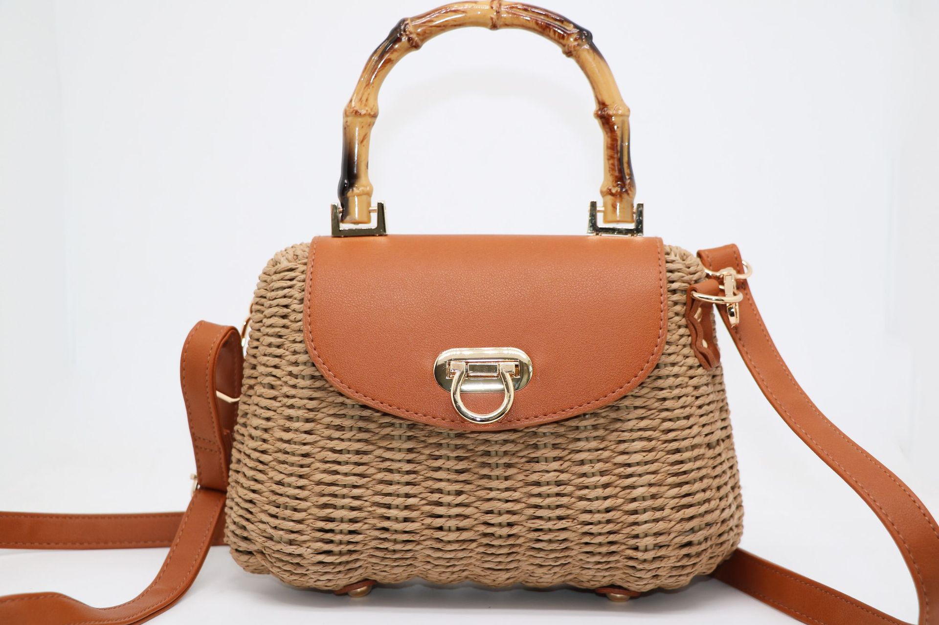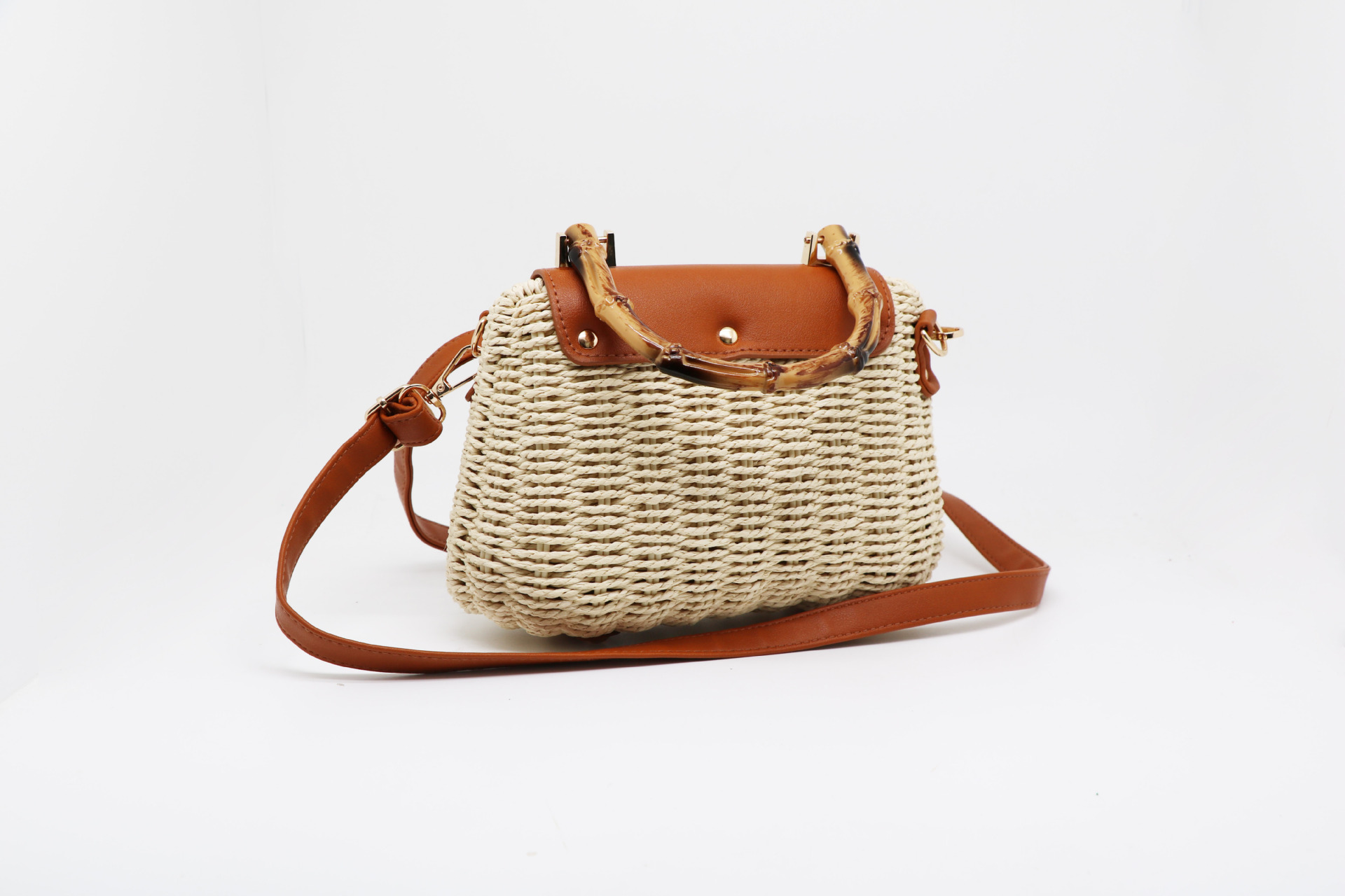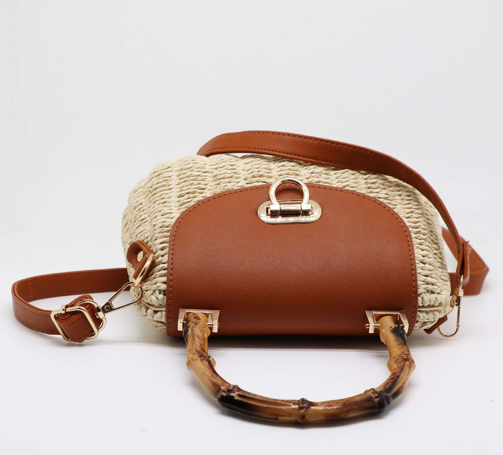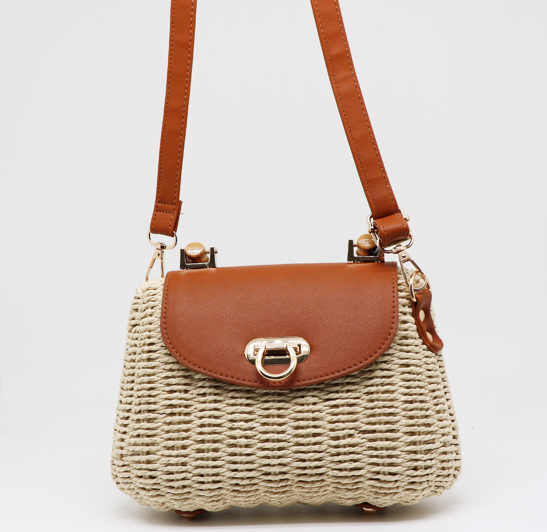 여성을위한 새로운 여름 해변 손으로 짠 가방 종이 로프 프레임 암소 코 잠금 캔디 가방 대각선 밀짚 가방 도매