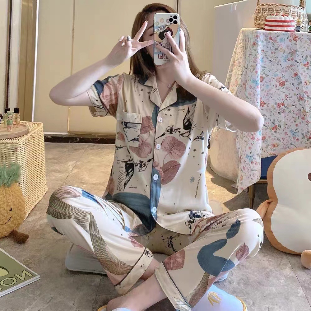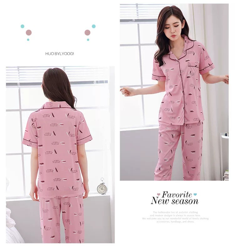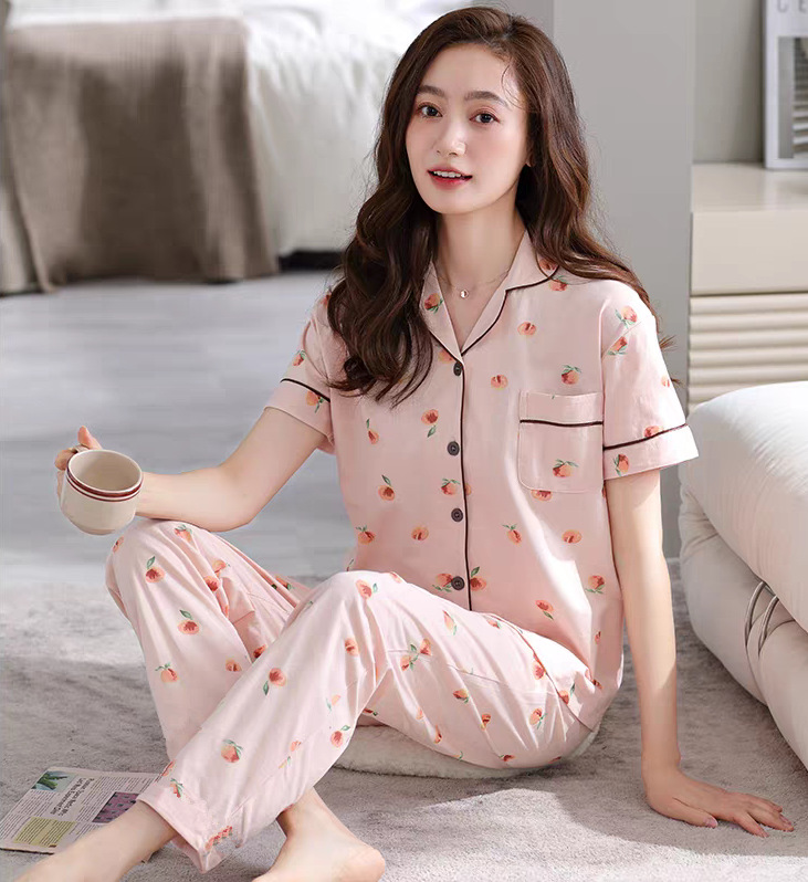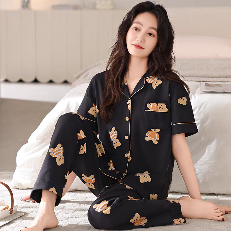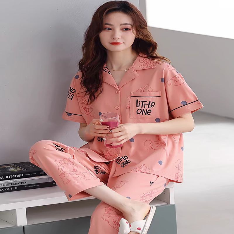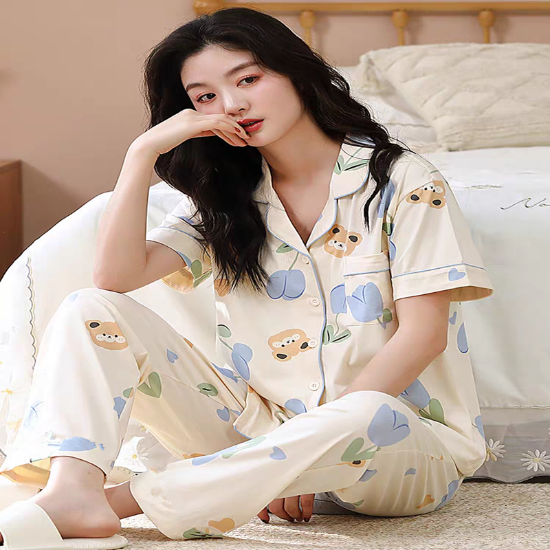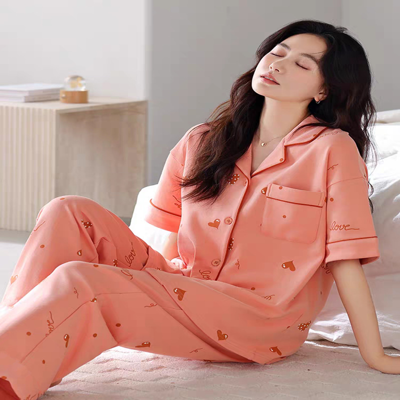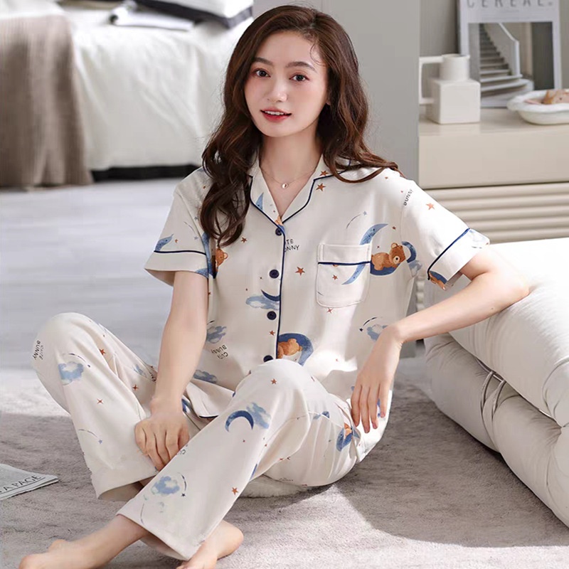 여성용 잠옷 여름 모조 면 반팔 바지 귀여운 2025 새로운 봄, 가을 얇은 스타일은 집 밖에서 착용 가능스토어 가기