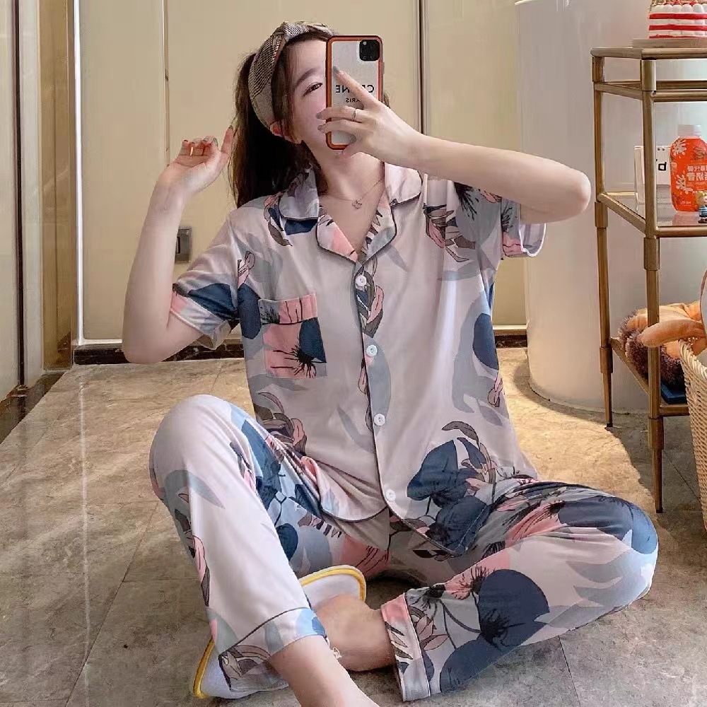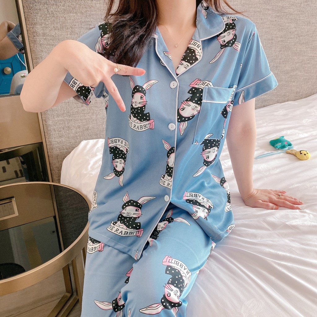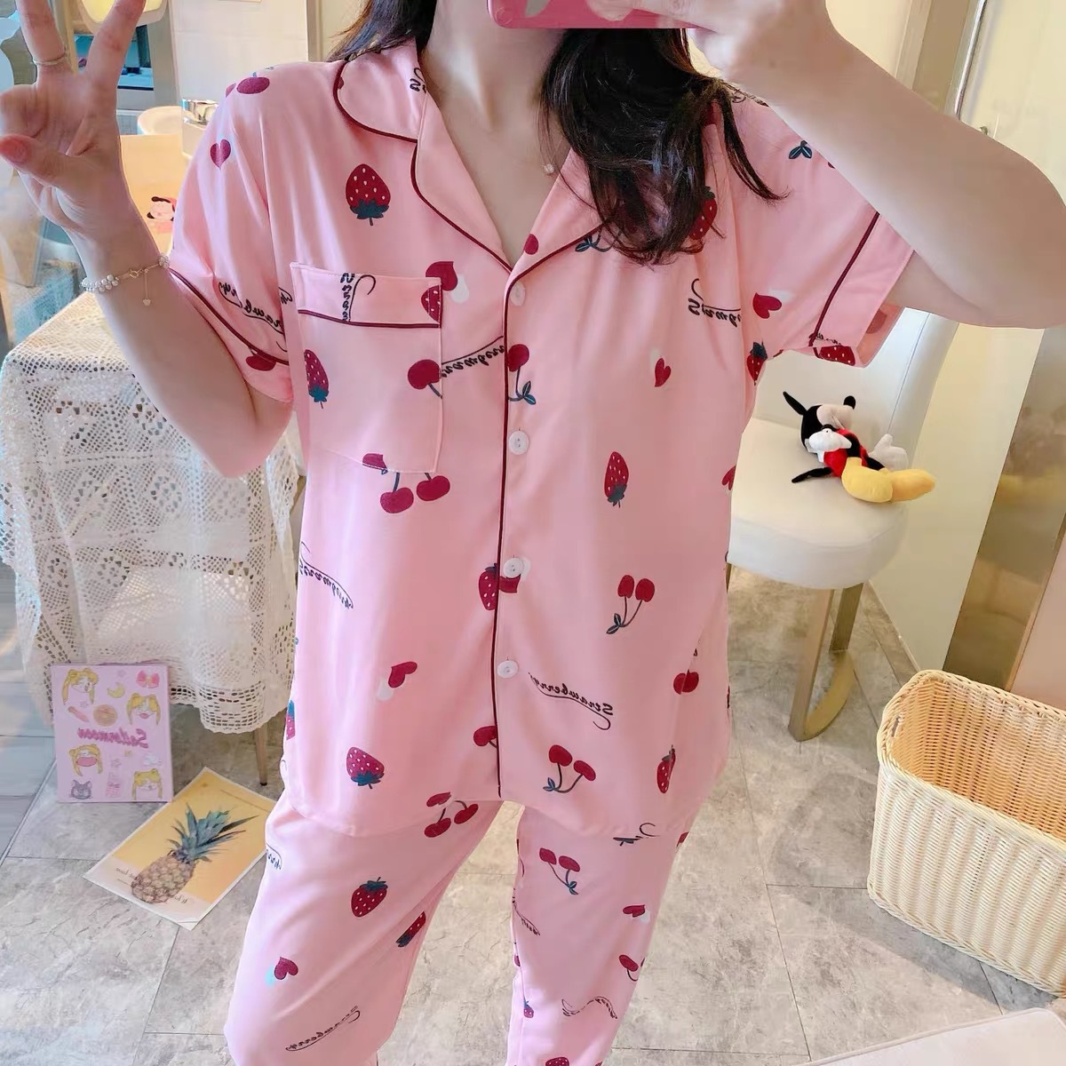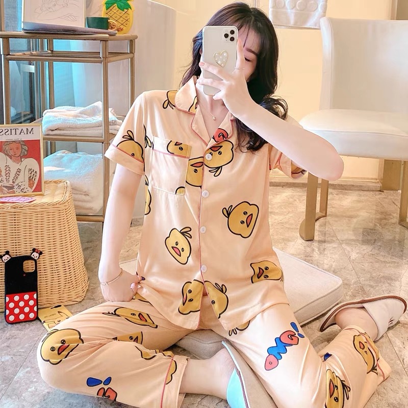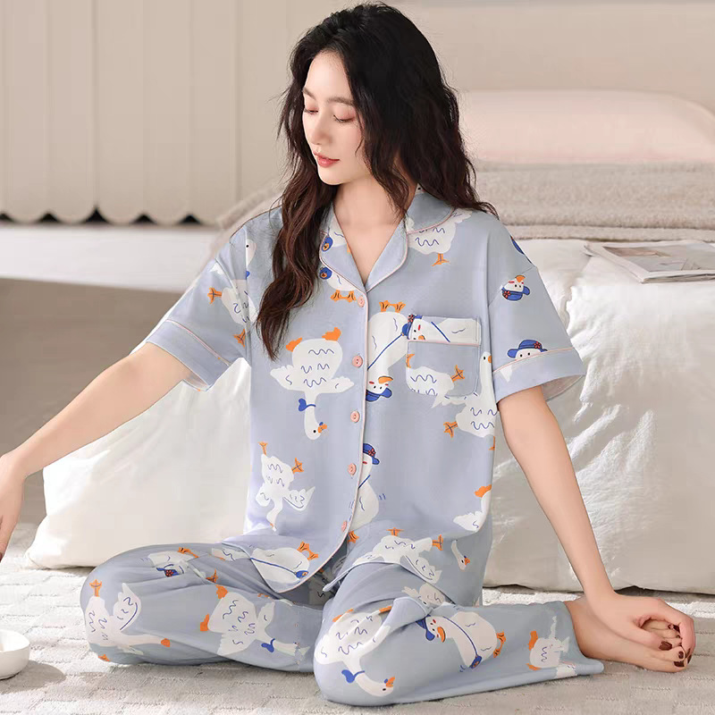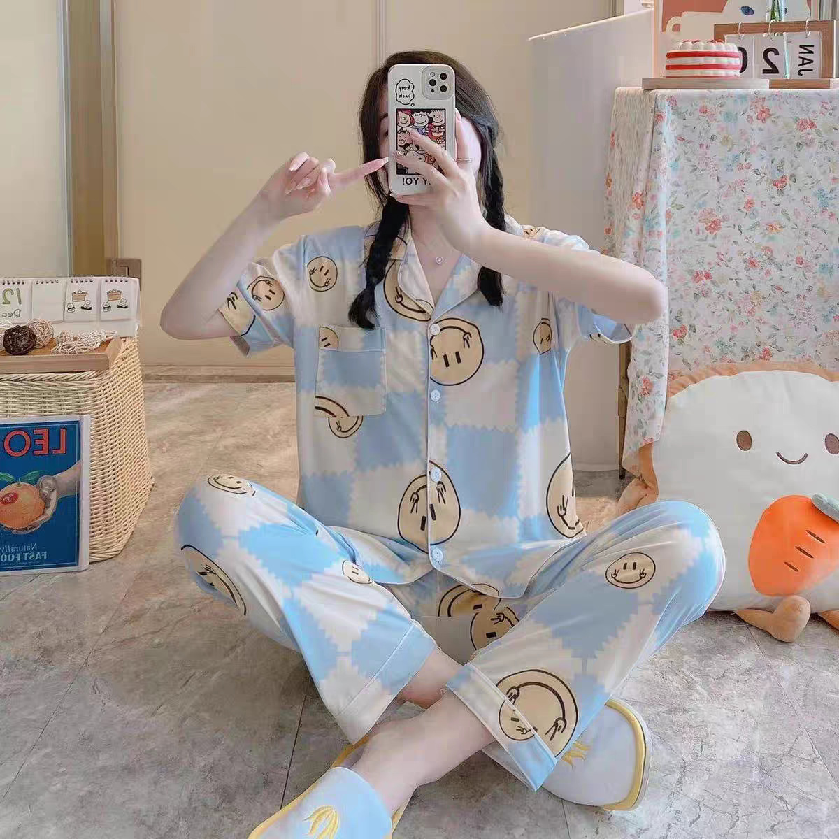 여성용 잠옷 여름 모조 면 반팔 바지 귀여운 2025 새로운 봄, 가을 얇은 스타일은 집 밖에서 착용 가능스토어 가기