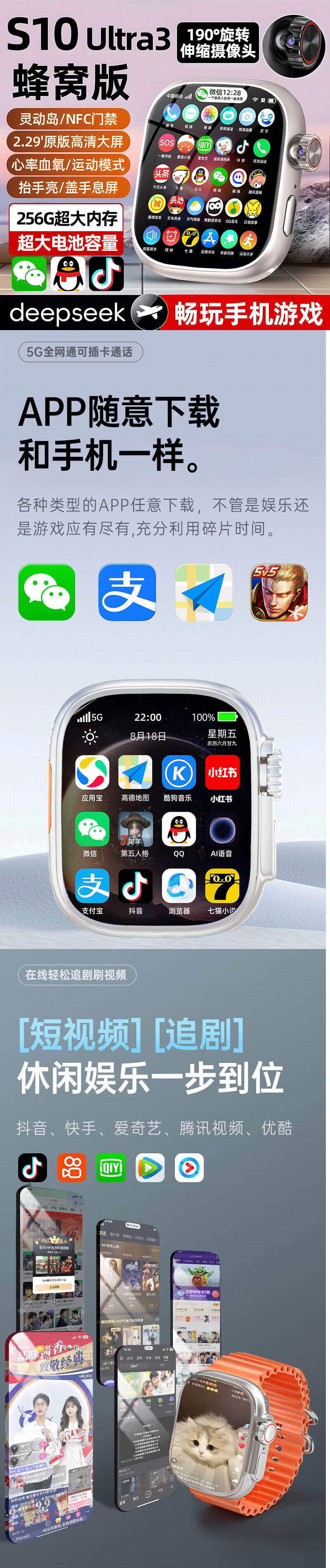 S10 시계 Huaqiangbei Ultra3 최고급 휴대폰 위치 지정 스마트 풀 네트워크 Wi-Fi 다운로드 새 버전스토어 가기