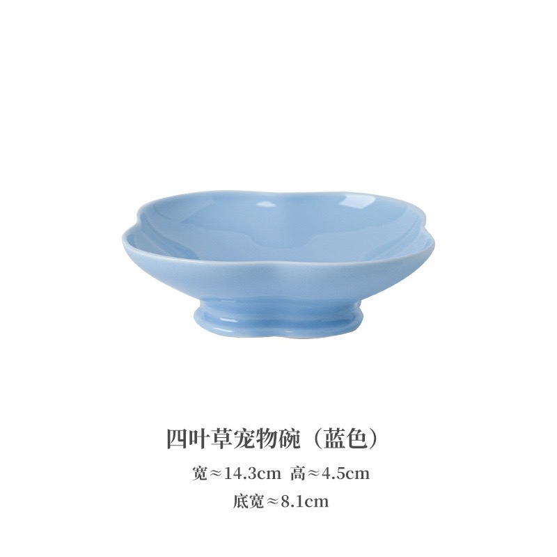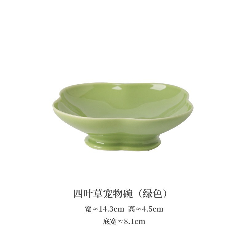Jingdezhen 제조업체 맞춤형 크리 에이 티브 세라믹 개밥 그릇 높은 밥 그릇 네잎 클로버 모양의 그릇 고양이 식기스토어 가기