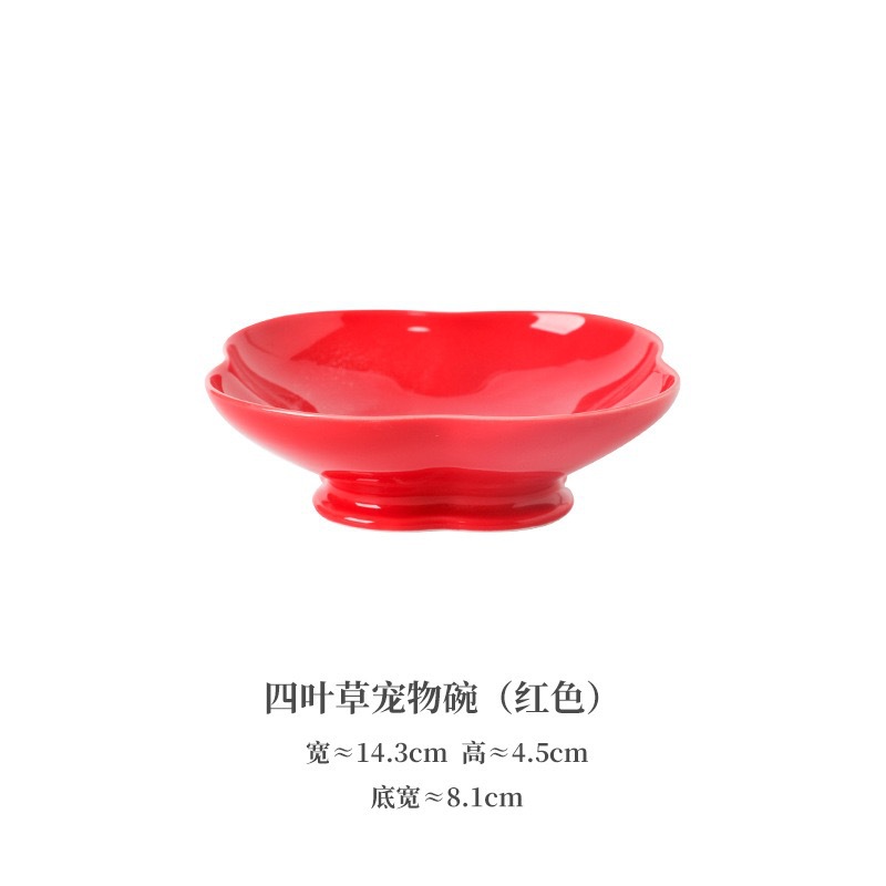 Jingdezhen 제조업체 맞춤형 크리 에이 티브 세라믹 개밥 그릇 높은 밥 그릇 네잎 클로버 모양의 그릇 고양이 식기