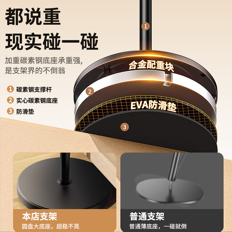 • 디스크 플로어 스탠드 + 암 2개 [휴대폰 클립 + Douyin 리모컨]