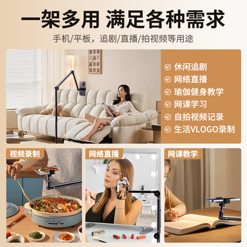 새로운 게으른 라이브 방송 휴대폰 특수 스탠드, 바닥에서 위로 촬영, 데스크탑 다기능 360도 회전 및 조절 가능