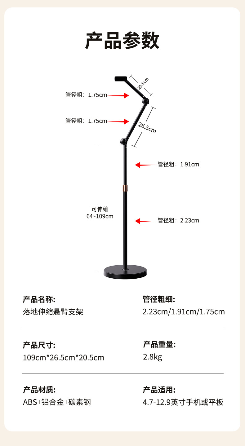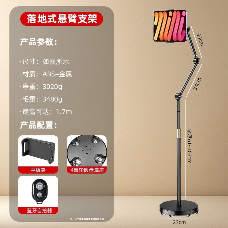• 디스크 플로어 스탠드 + 암 2개 [iPad 클립 + Douyin 리모컨]