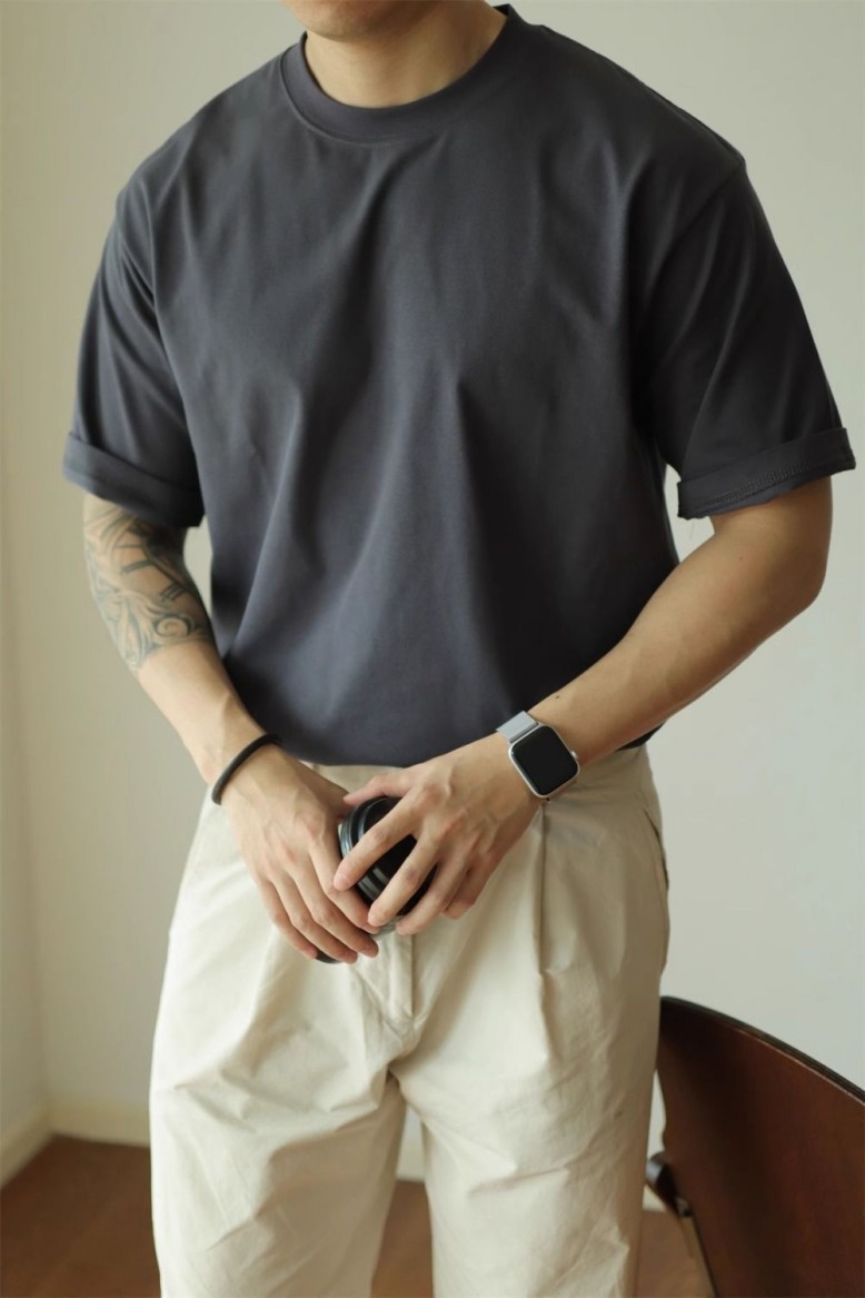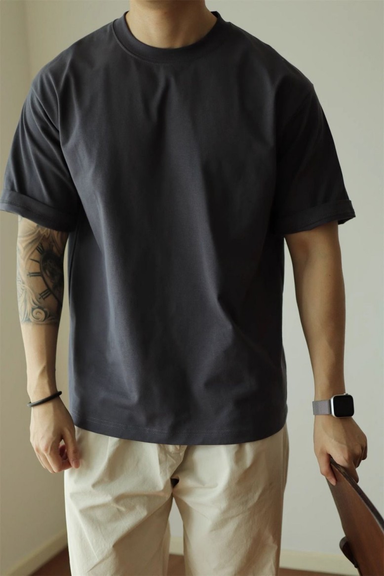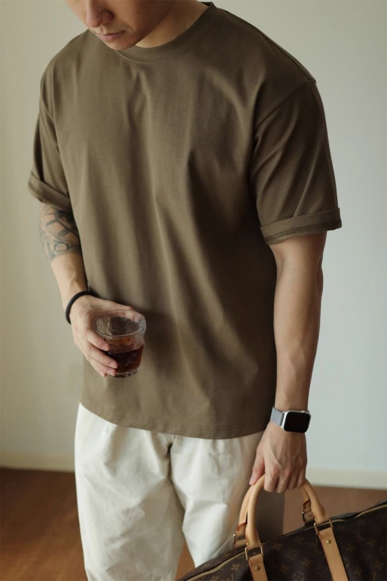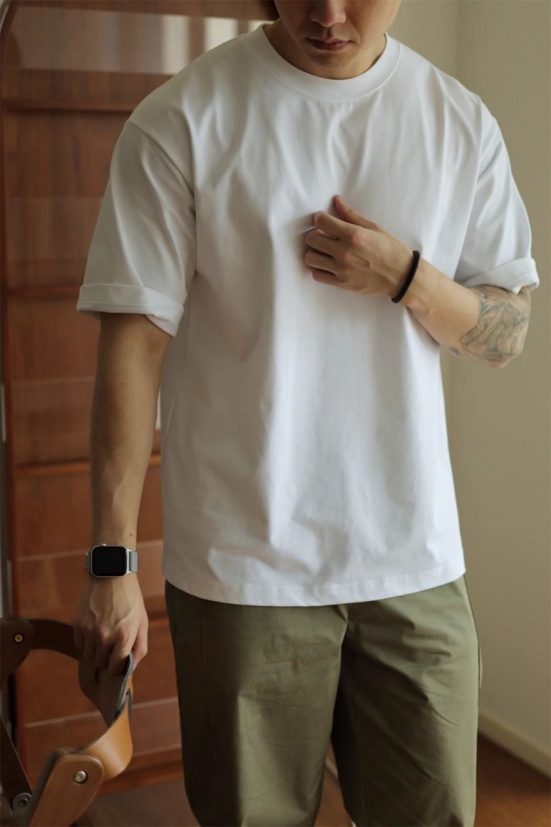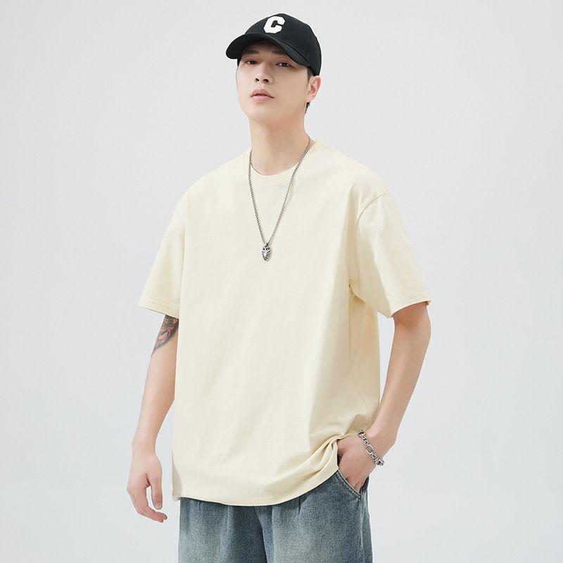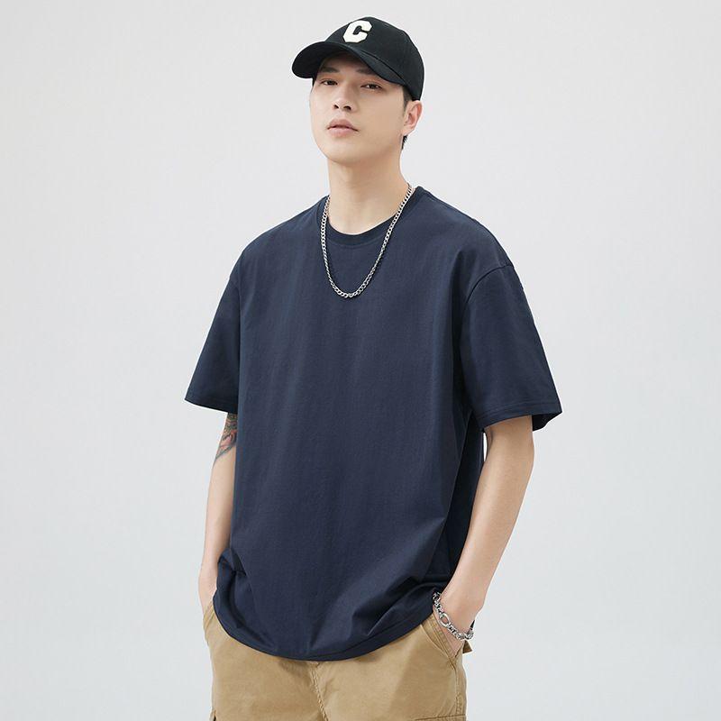 아메리칸 스타일 300g 헤비급 티셔츠 남성용 솔리드 컬러 반팔 복고풍 작업복 다용도 바닥 셔츠 비즈니스 라운드 넥 루즈 반소매스토어 가기