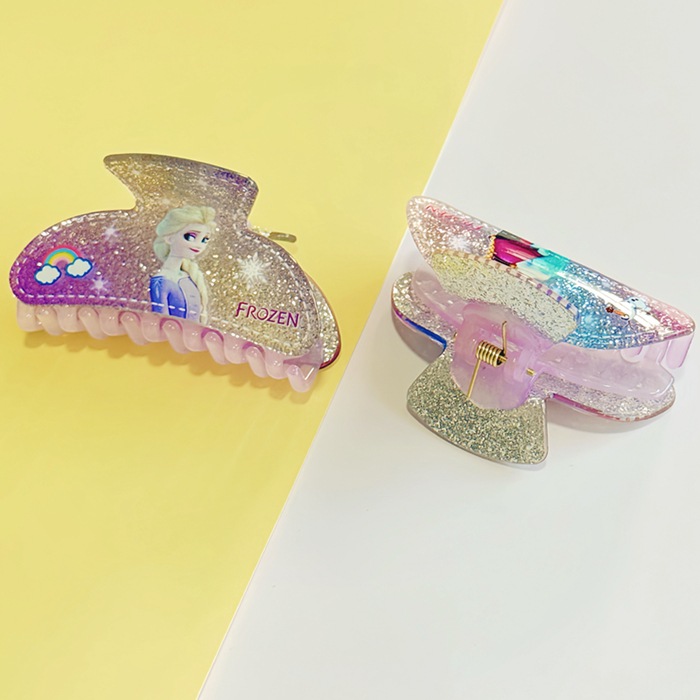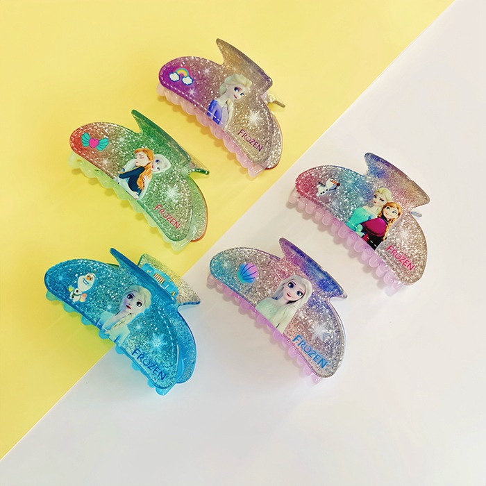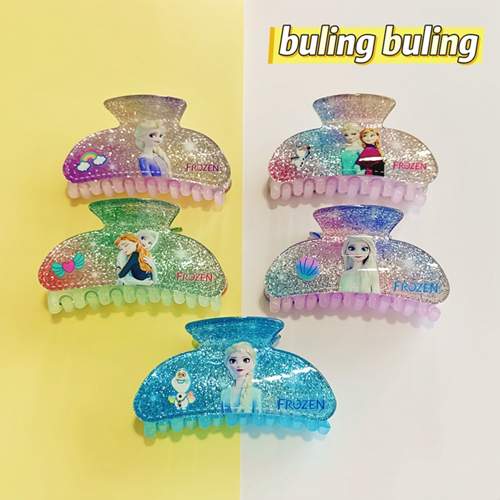 새로운 만화 오션 겨울왕국 클립 엘사 공주 아크릴 패치 반짝이는 하이 포니테일 귀여운 머리 장식스토어 가기