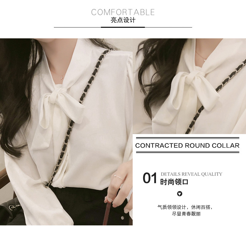 매우 요정 같은 상의, 패셔너블한 봄 신상품, 벨 슬리브 보우 쉬폰 화이트 셔츠, 2023 작은 셔츠 기질스토어 가기