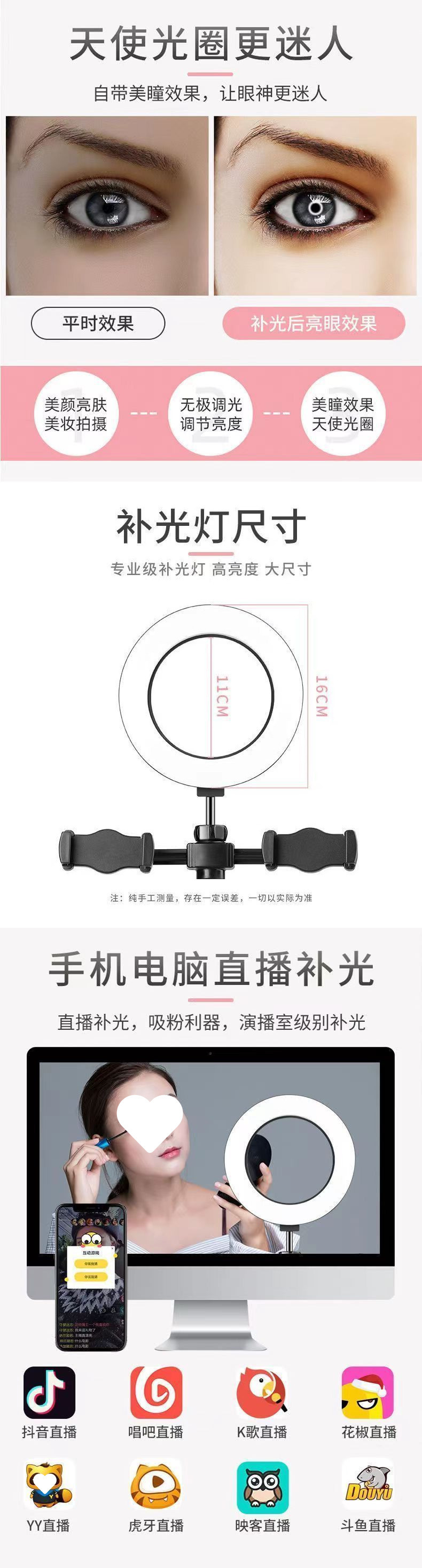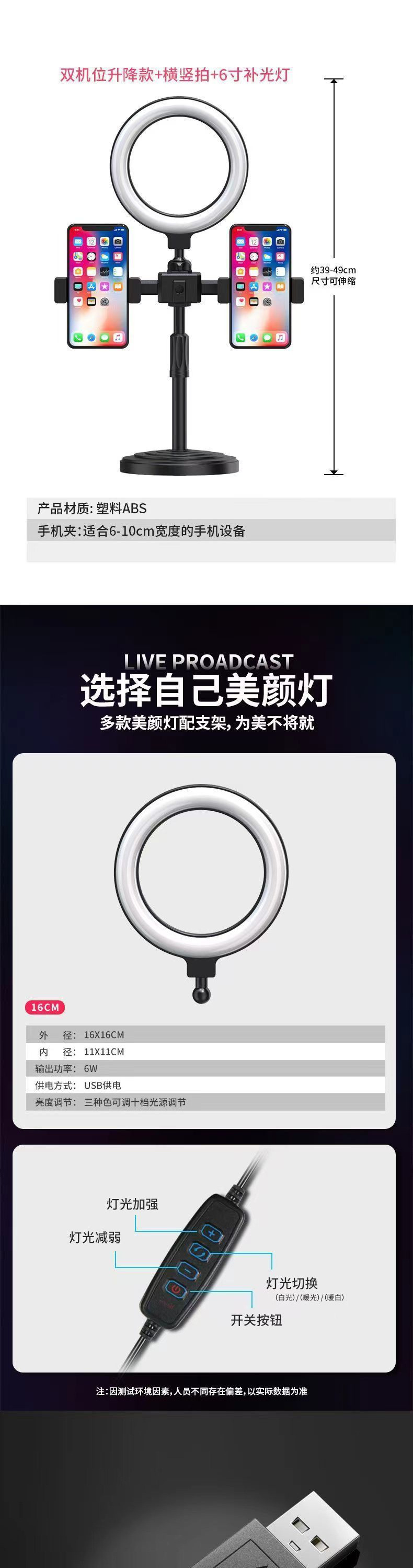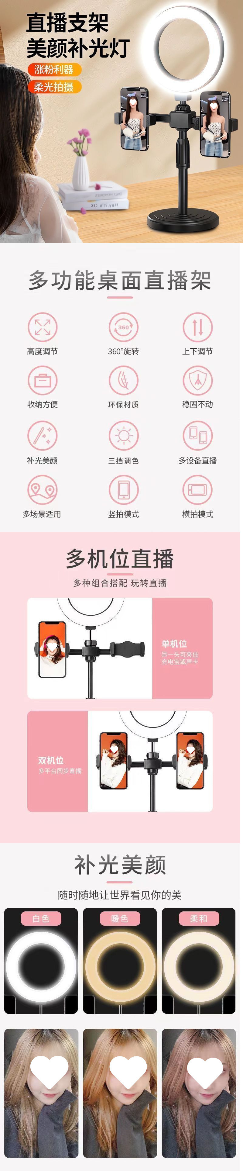 촬영용 휴대폰 데스크탑 스탠드, 조명, 카메라, 리프팅 비디오, 다기능 셀카, 뷰티 라이브 방송, 사진 촬영 및 드라마 시청
