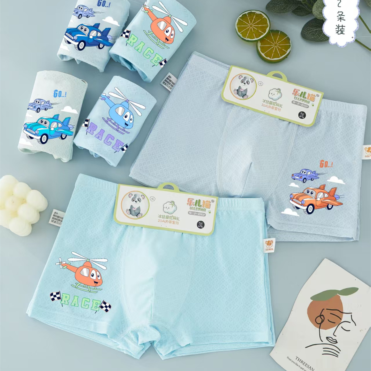 Leermao 소년 복서 팬티 얼음 실크 통기성 구멍 시원한 통기성 속건성 피부 친화적 인 애니메이션 만화 복서 팬티