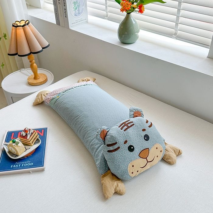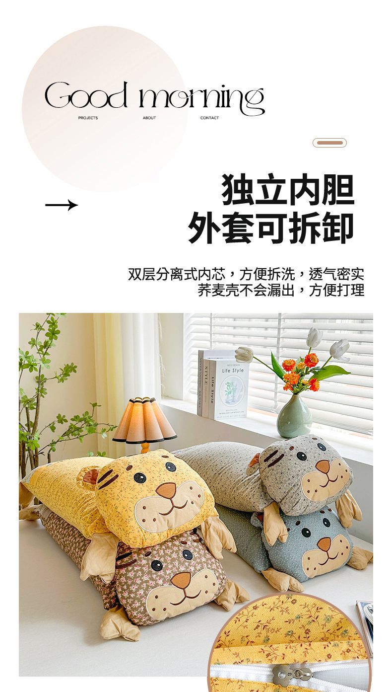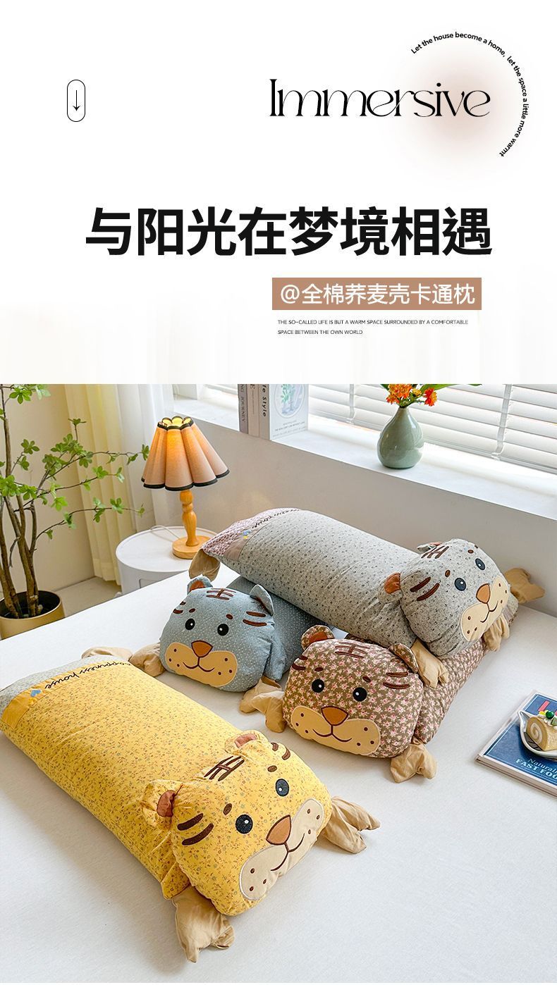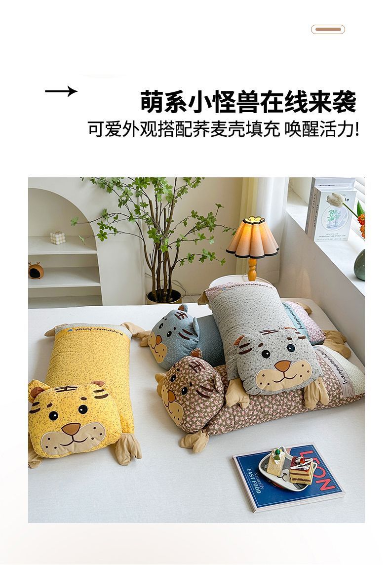인터넷 연예인 어린이 베개 2025 봄과 여름 새로운 귀여운 순수 코튼 인 호랑이 머리 메밀 베개 만화 어린이 침대스토어 가기