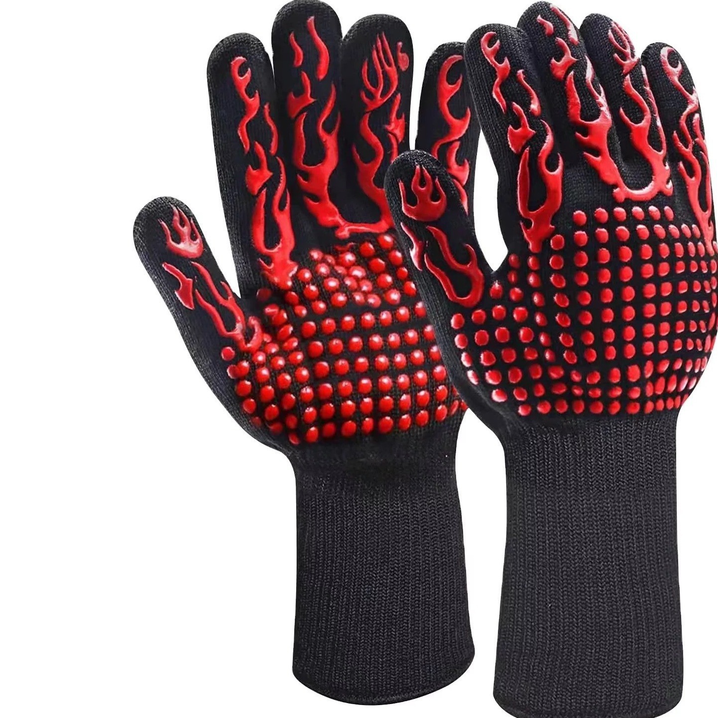 아라미드 내화 및 단열 500도 고온 방지 난연 및 화상 방지 장갑 실리콘 전자레인지 바베큐 보호 장갑