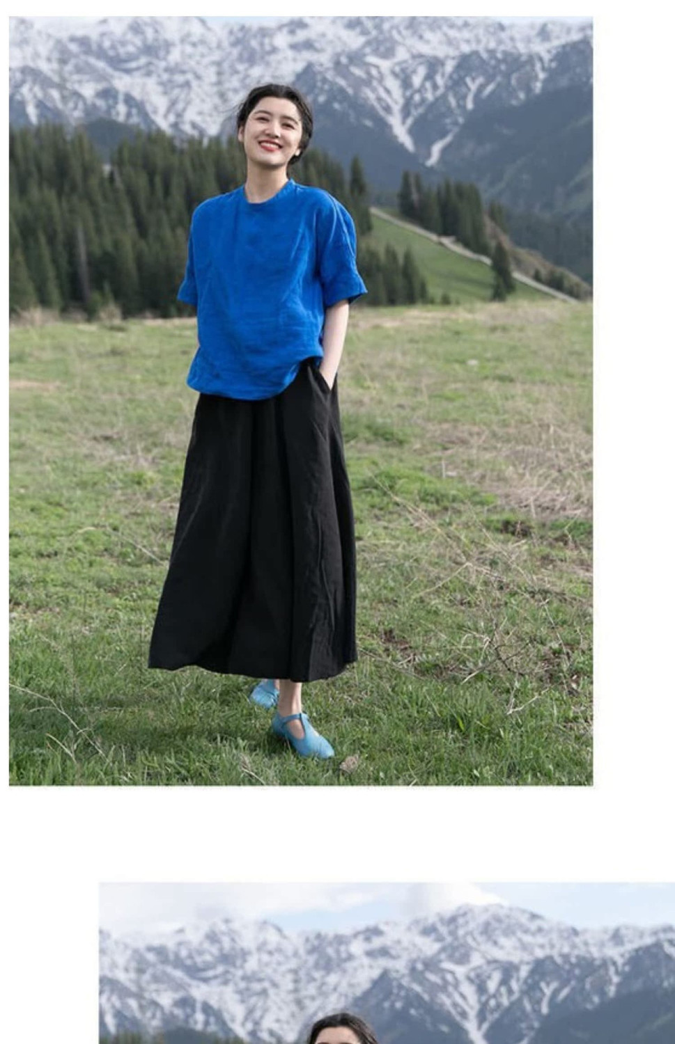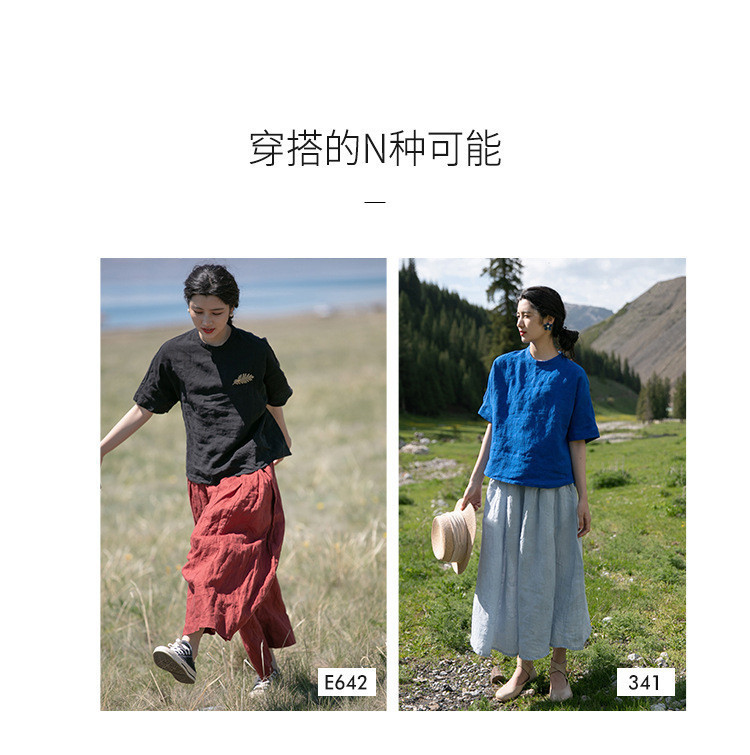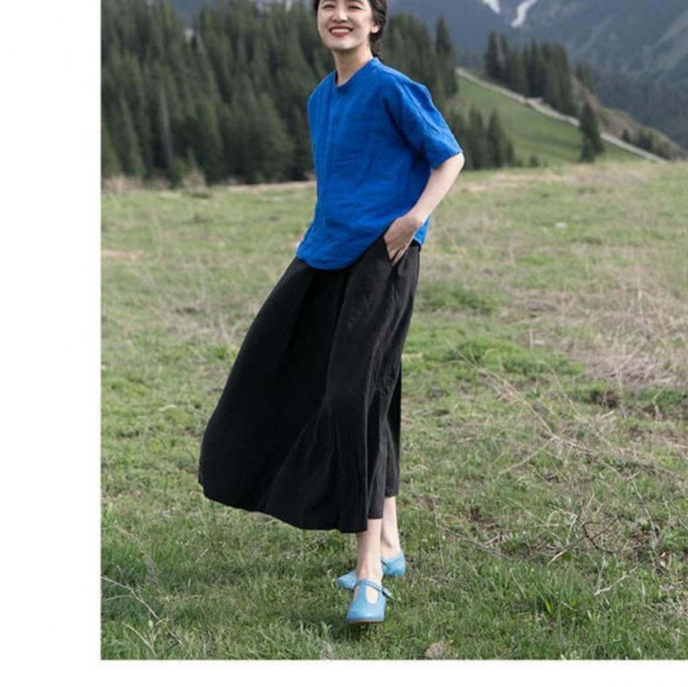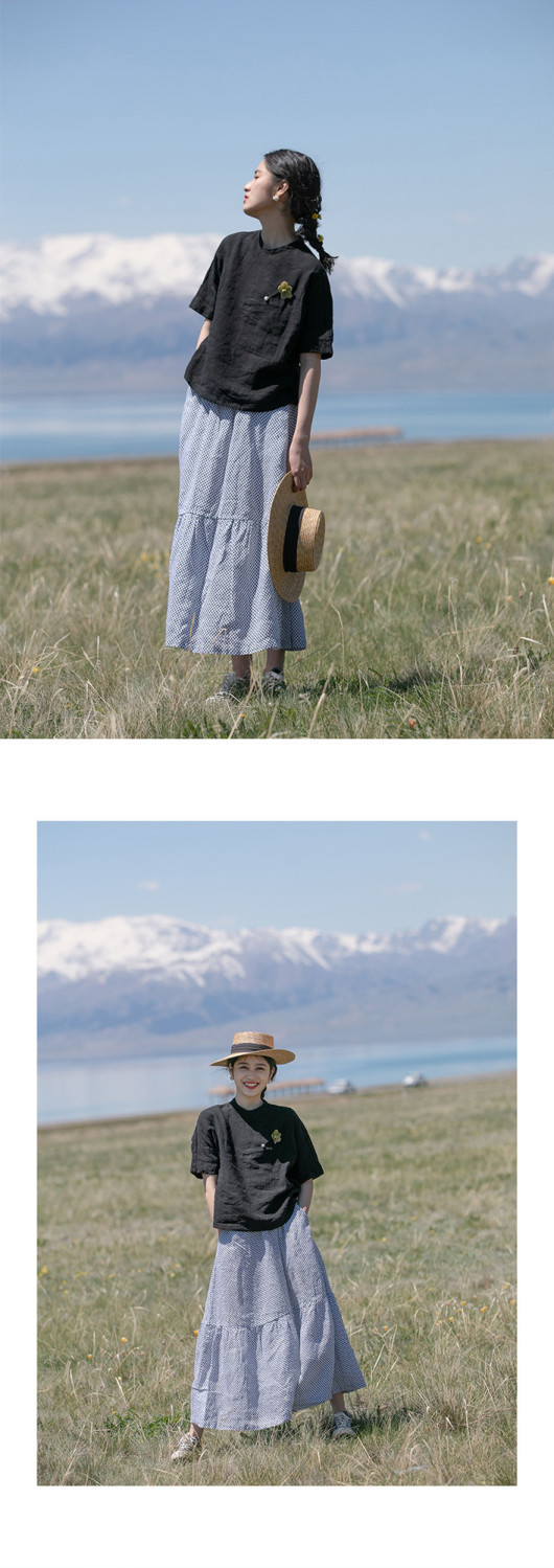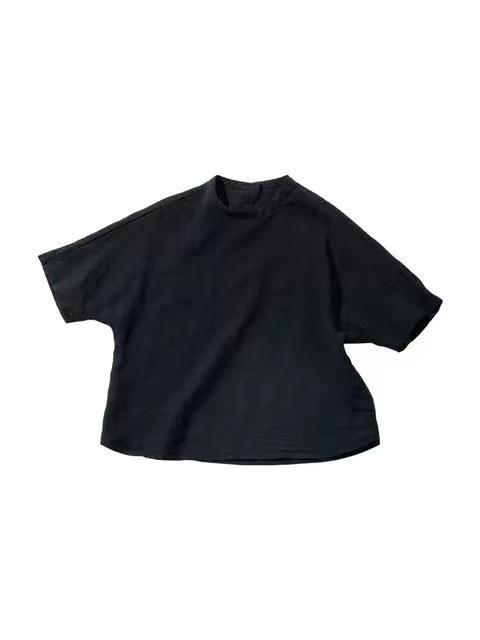 2025 여름 새로운 복고풍 블랙 스탠드 칼라 반팔 리넨 셔츠 여성 티셔츠 느슨한 다목적 예술적 셔츠 여성스토어 가기