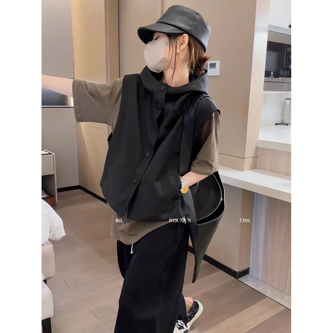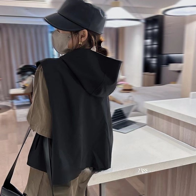 956 # 유럽 스타일 조끼, 일본식 레이어드 조끼, 후드 작업복, 여성 조끼, 봄, 가을 여성 조끼, 작은 사이즈스토어 가기