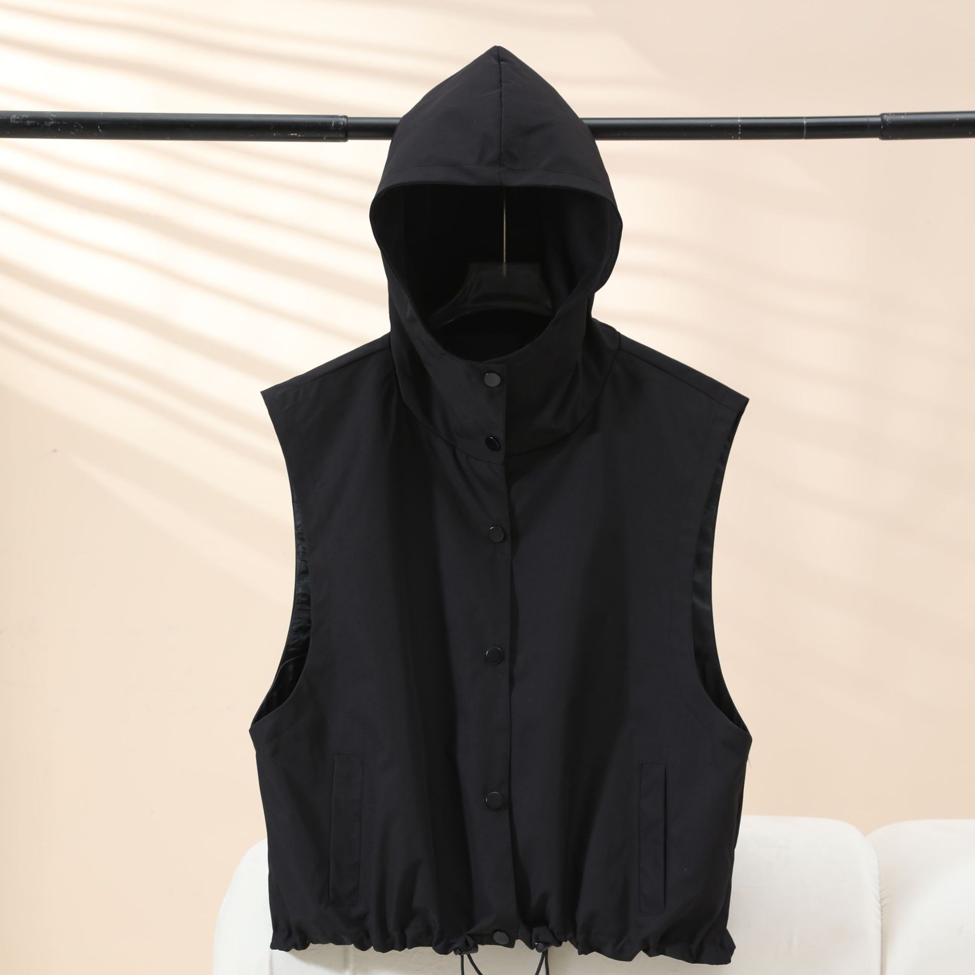 956 # 유럽 스타일 조끼, 일본식 레이어드 조끼, 후드 작업복, 여성 조끼, 봄, 가을 여성 조끼, 작은 사이즈