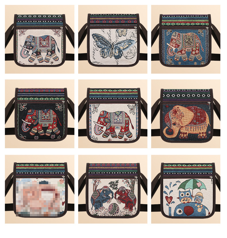 새로운 민족 스타일 코끼리 캔버스 가방 양면 골드 실크 자카드 크로스 바디 백 여행 통근 편안하고 세련된 숄더백스토어 가기