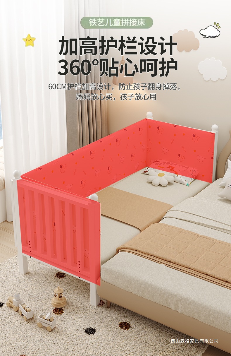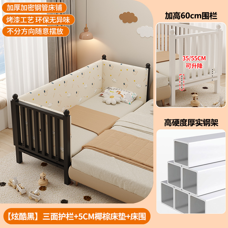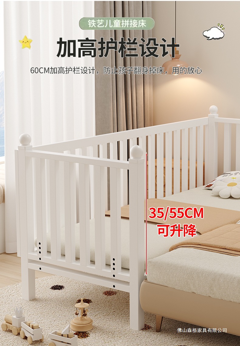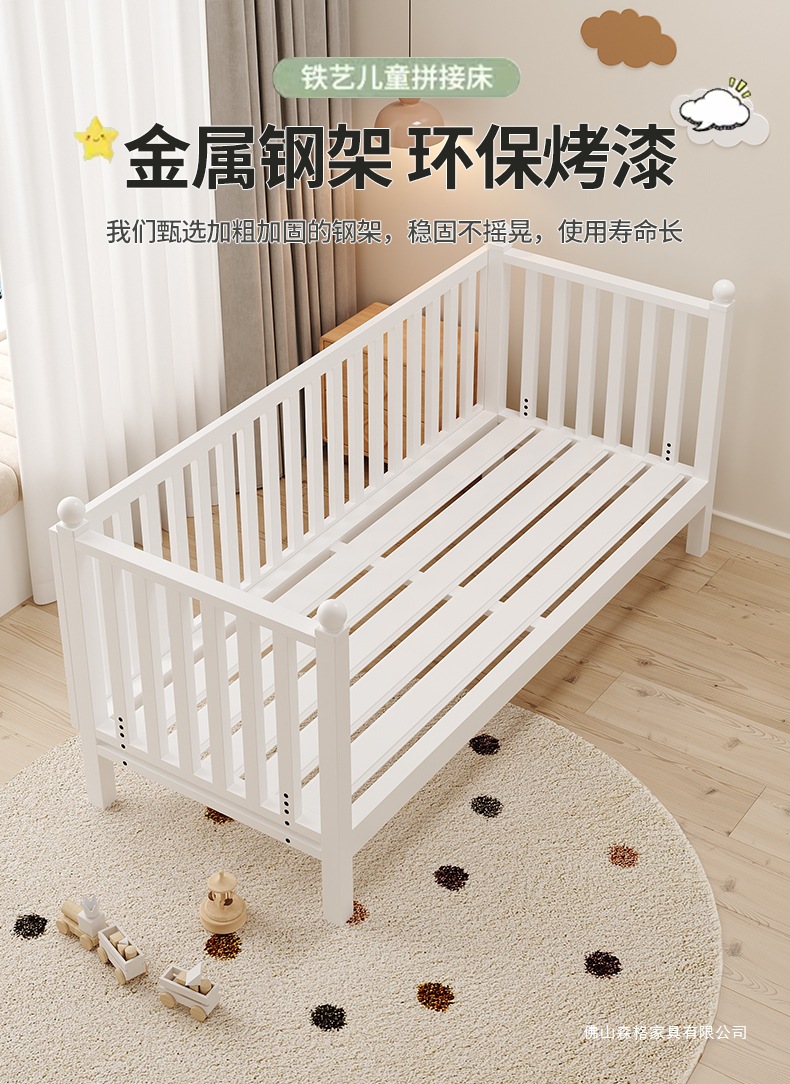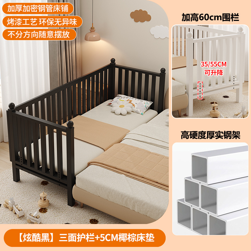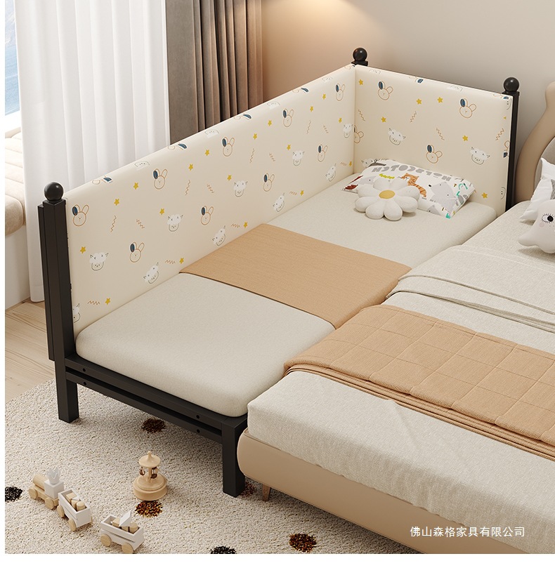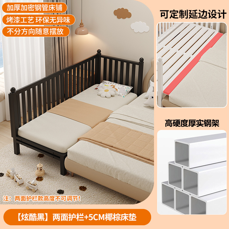 가드레일이 있는 철제 어린이 침대 접합 침대, 조절 가능한 유아용 침대, 아기 침대, 넓은 침대 옆 접합 침대