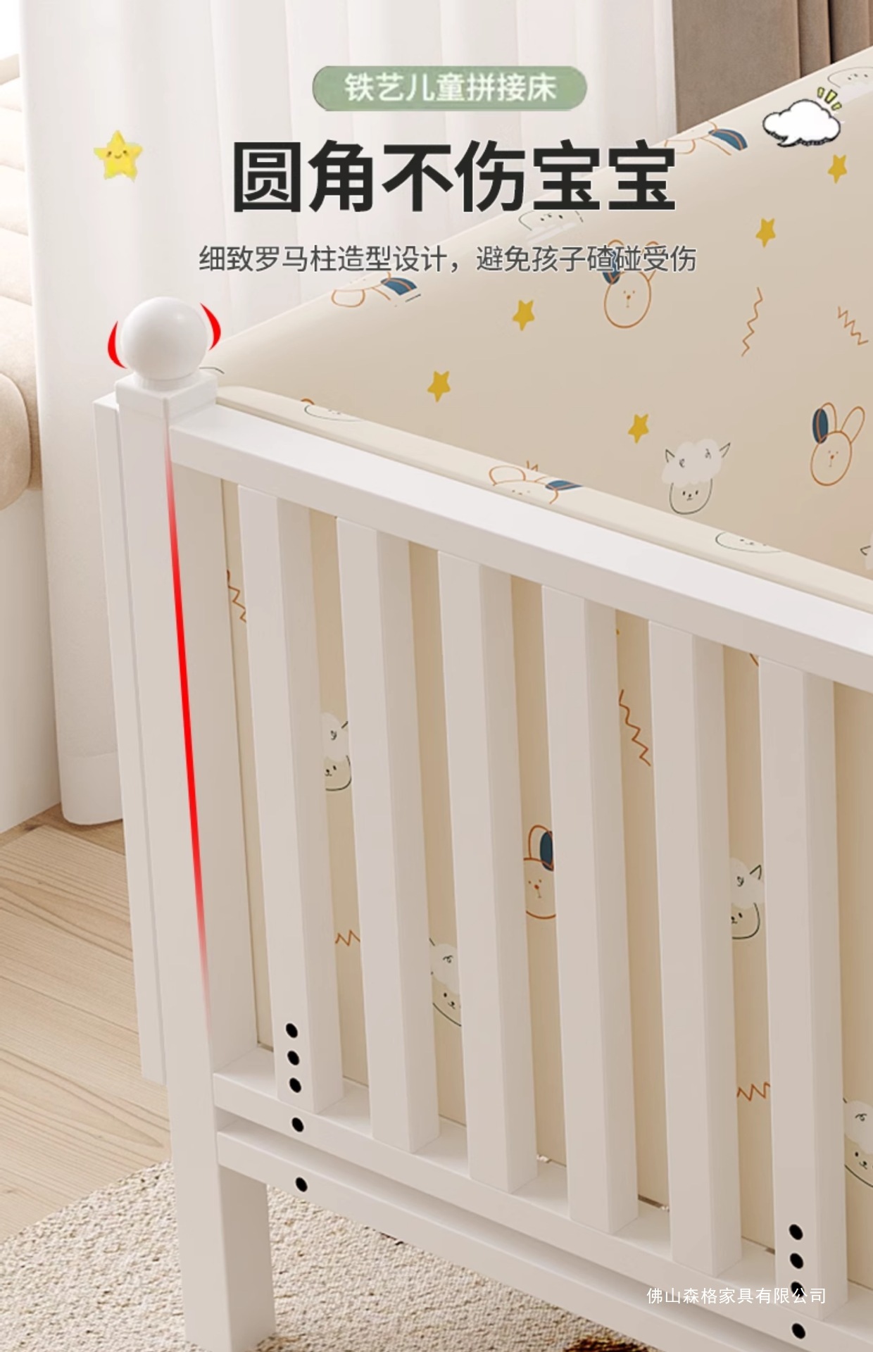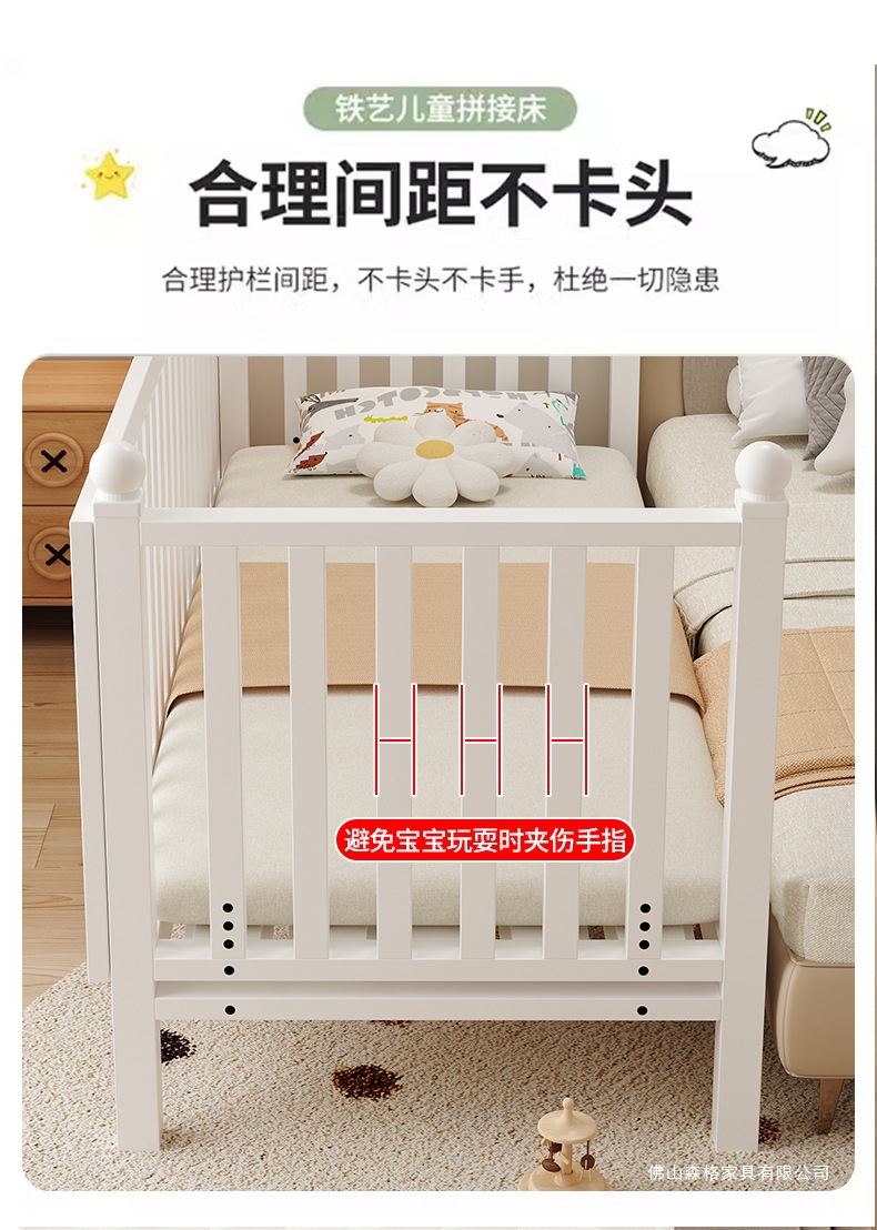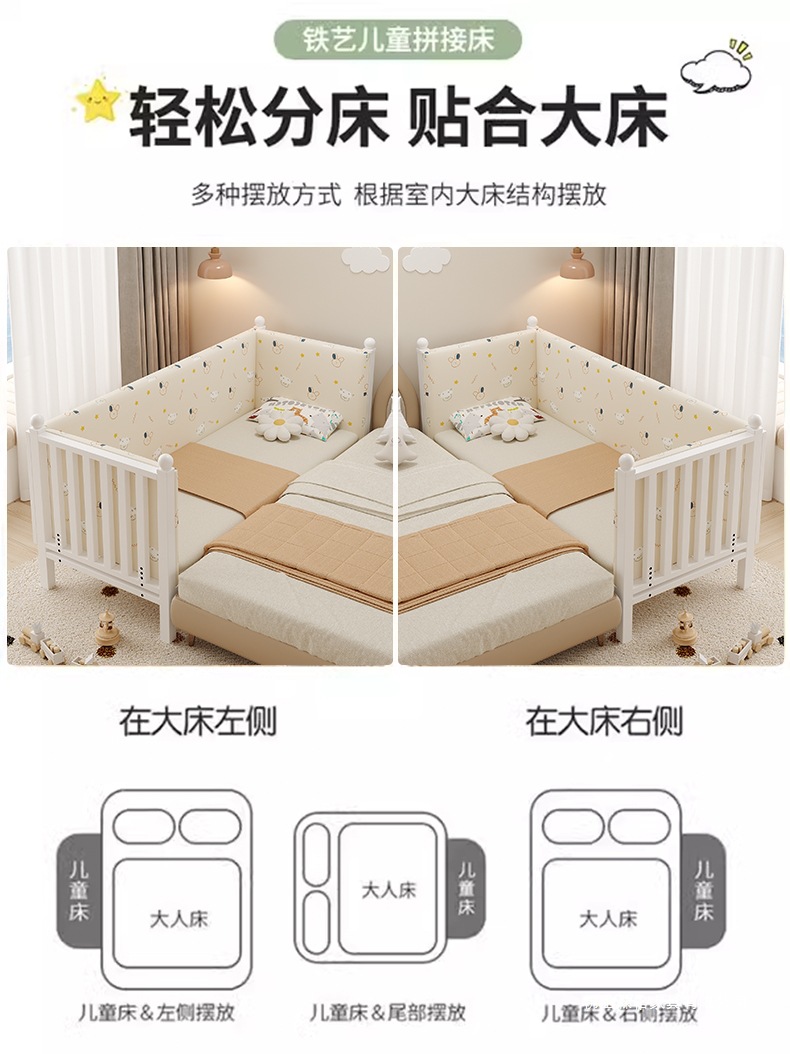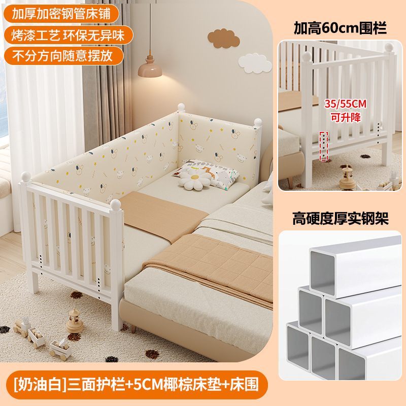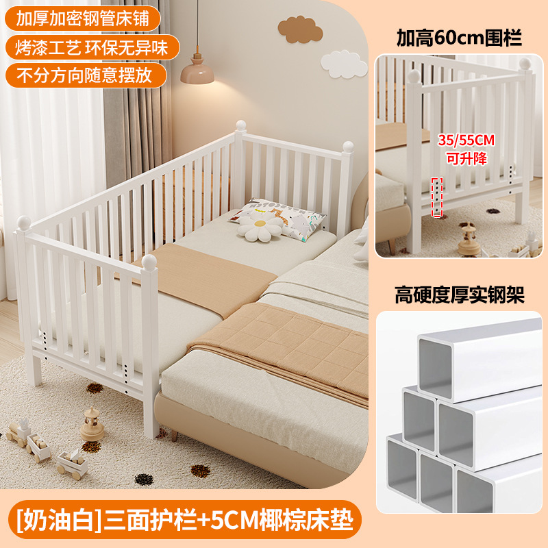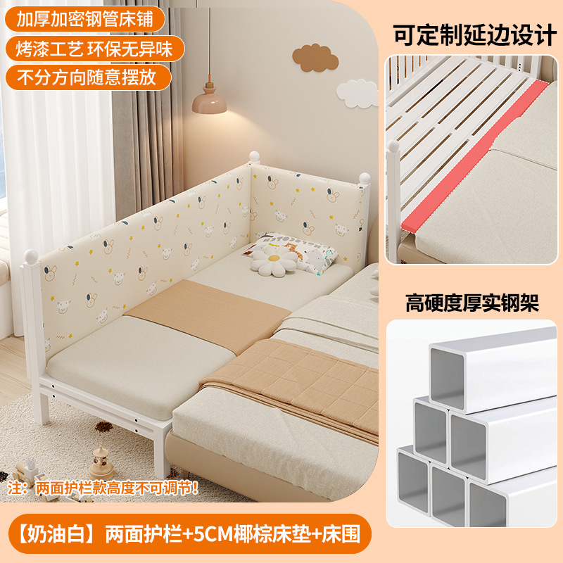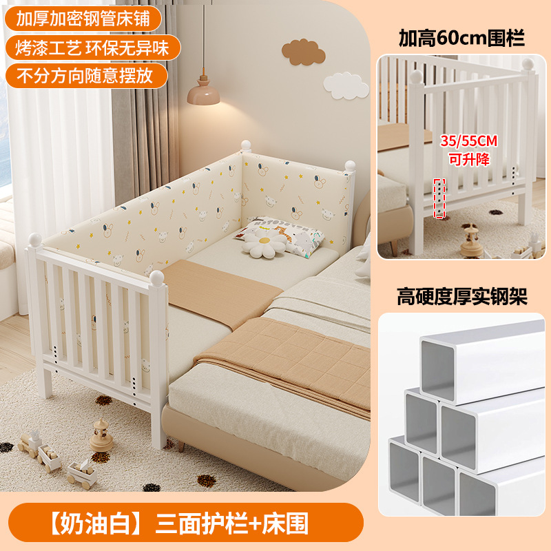가드레일이 있는 철제 어린이 침대 접합 침대, 조절 가능한 유아용 침대, 아기 침대, 넓은 침대 옆 접합 침대