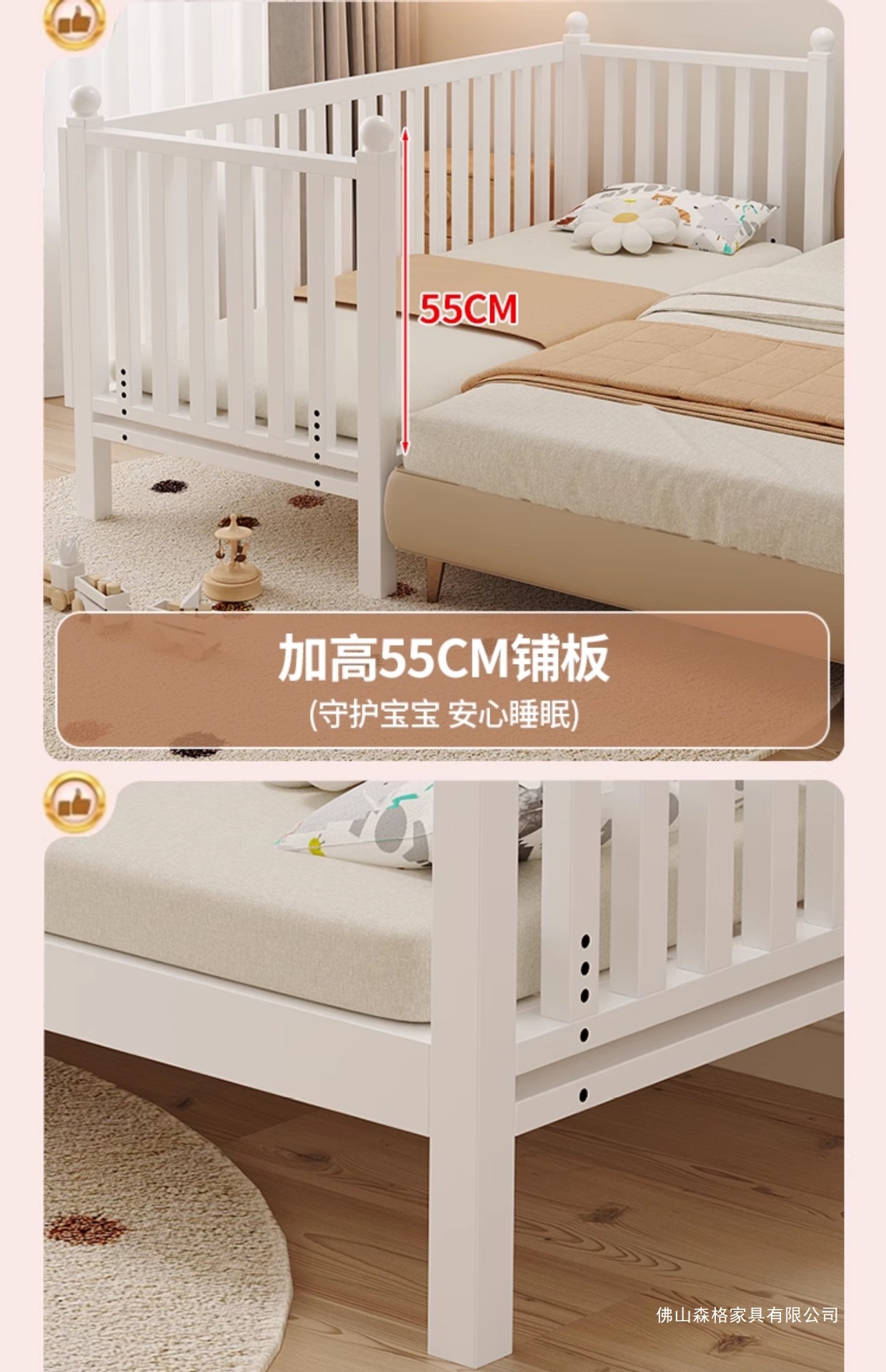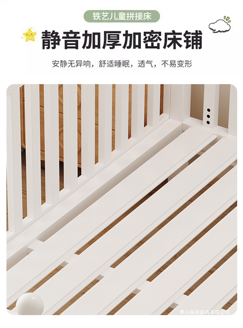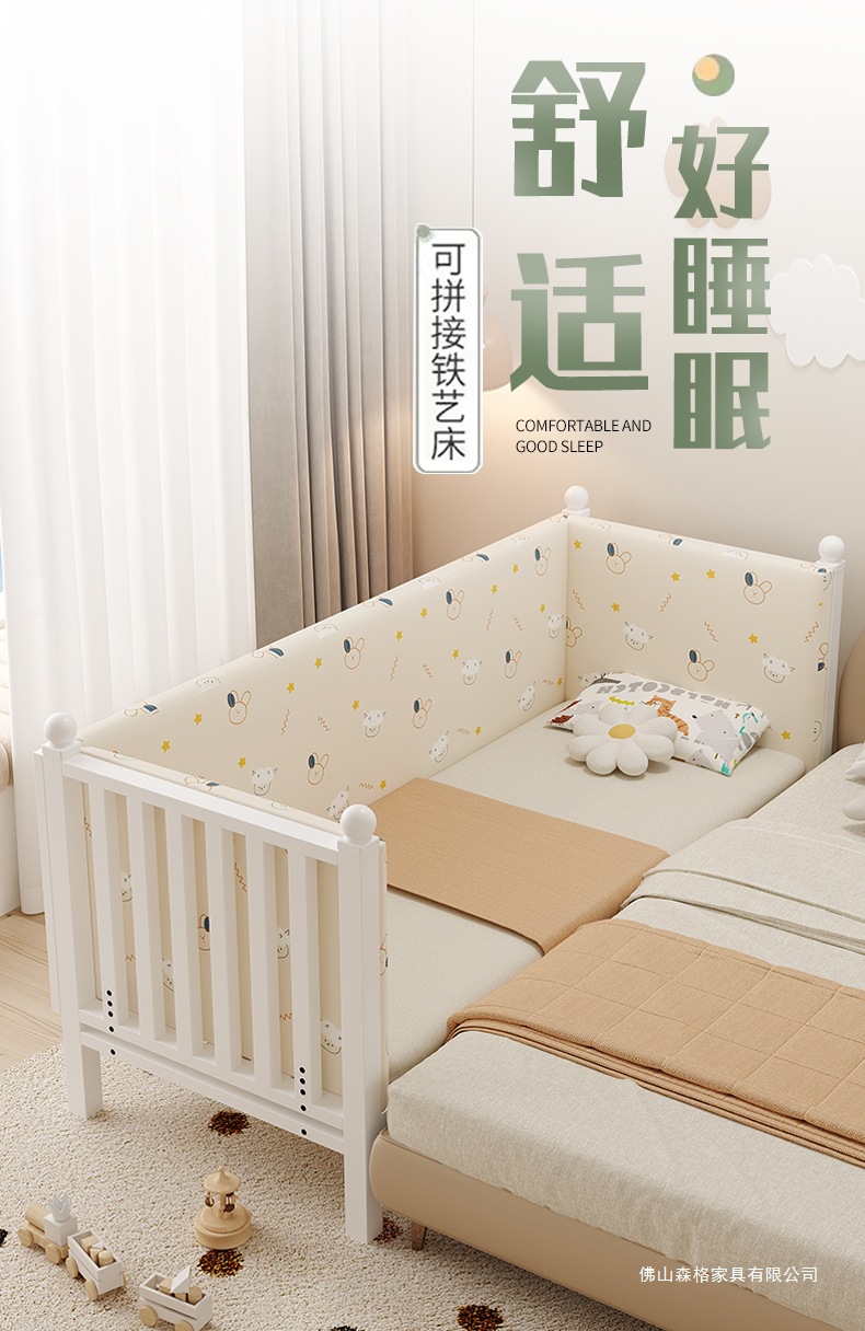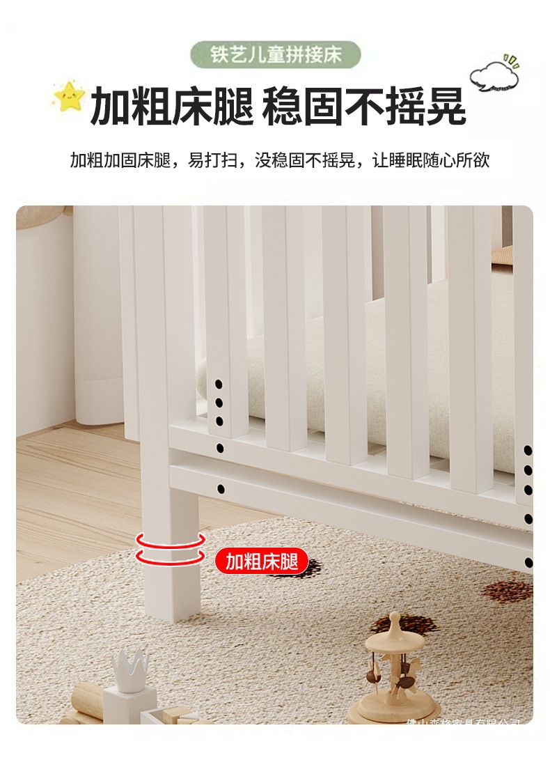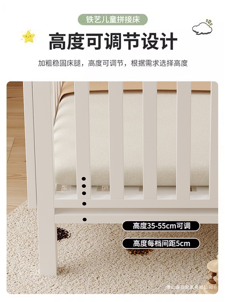 가드레일이 있는 철제 어린이 침대 접합 침대, 조절 가능한 유아용 침대, 아기 침대, 넓은 침대 옆 접합 침대
