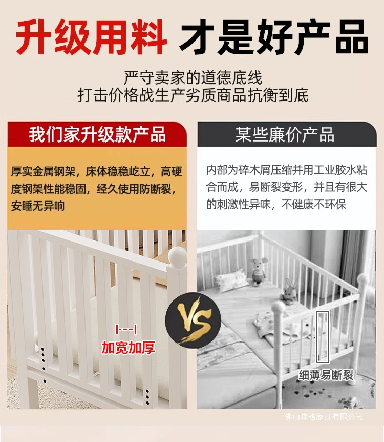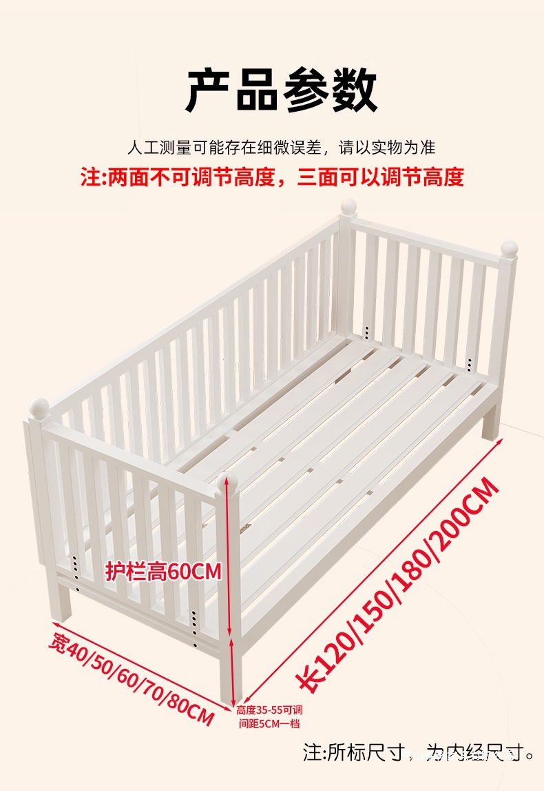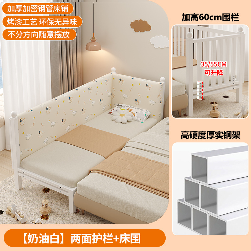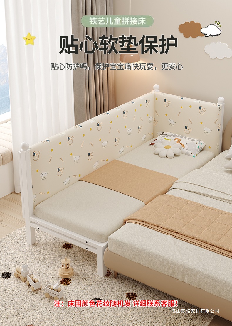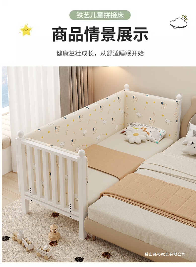 가드레일이 있는 철제 어린이 침대 접합 침대, 조절 가능한 유아용 침대, 아기 침대, 넓은 침대 옆 접합 침대스토어 가기