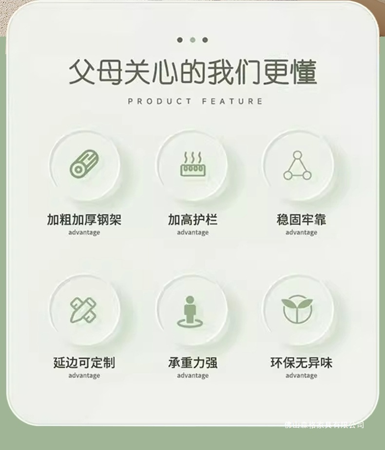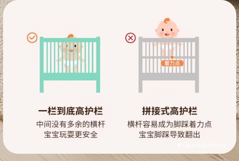 • [쿨블랙] 삼면가드레일 + 5cm 코코넛팜 매트리스 + 높이 조절이 가능한 침대 옆 35-55 [상단 원형 디자인]