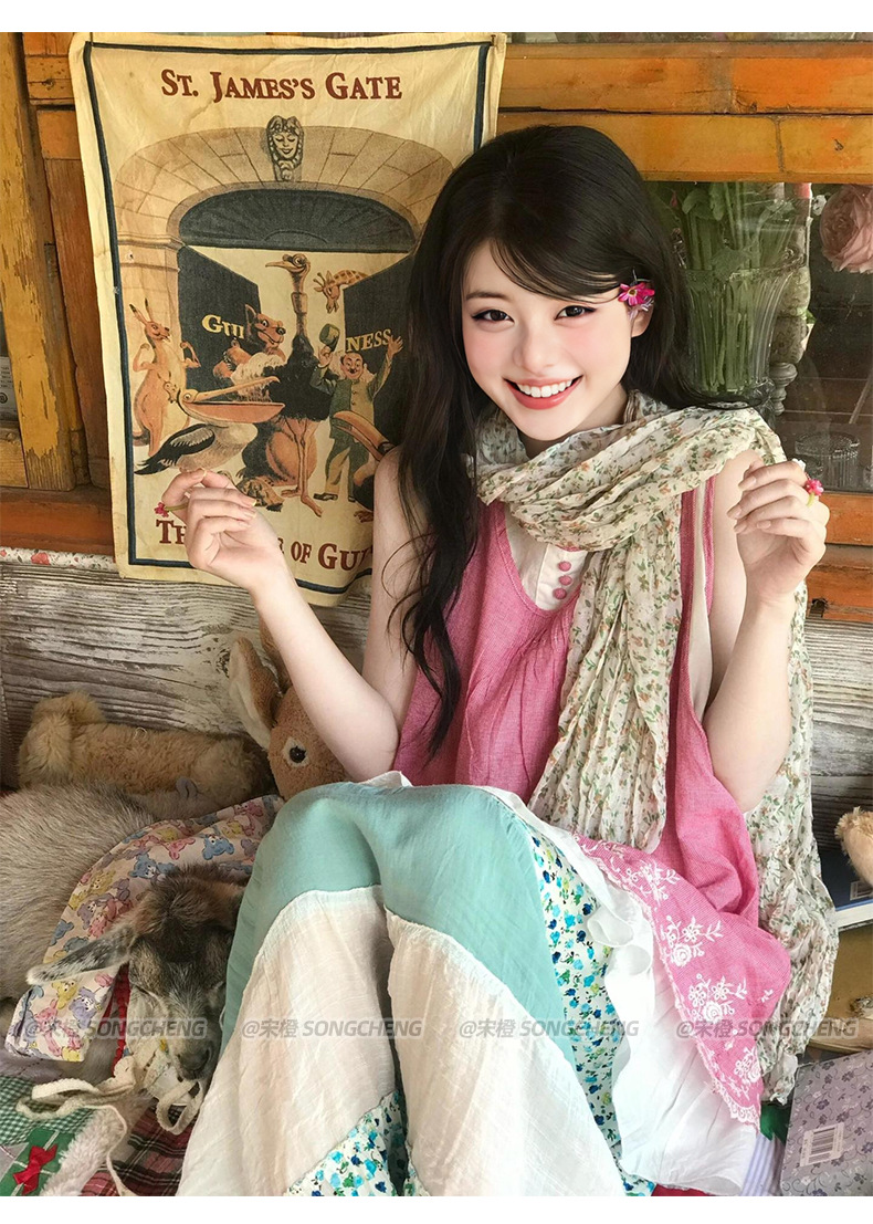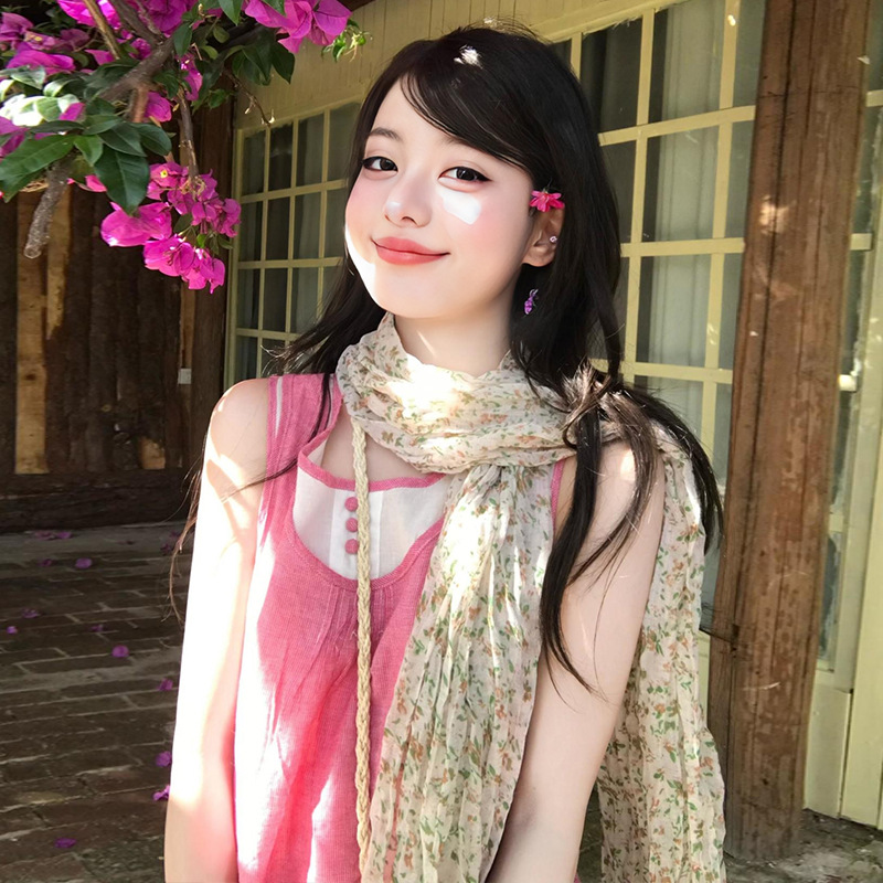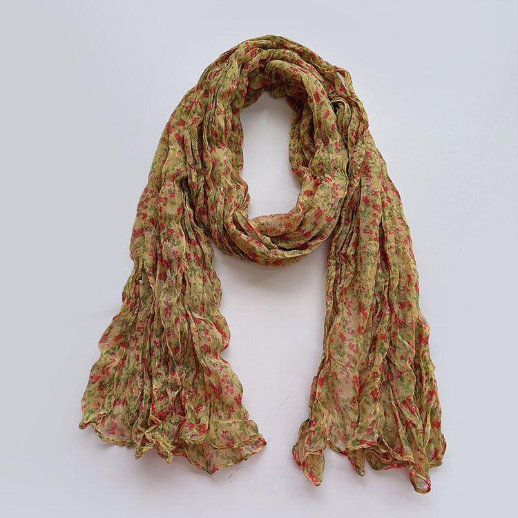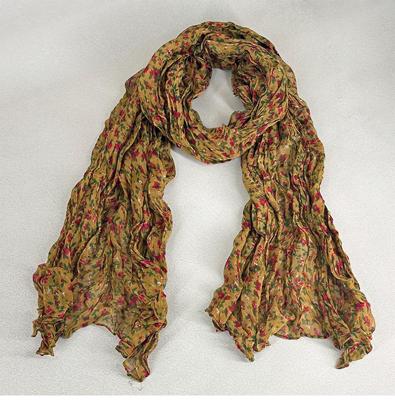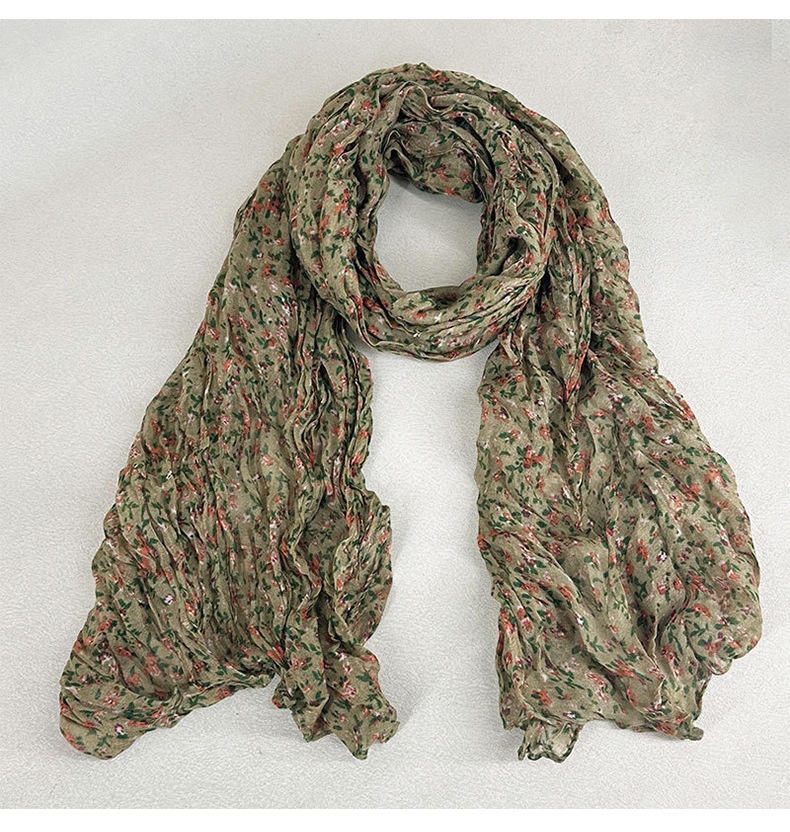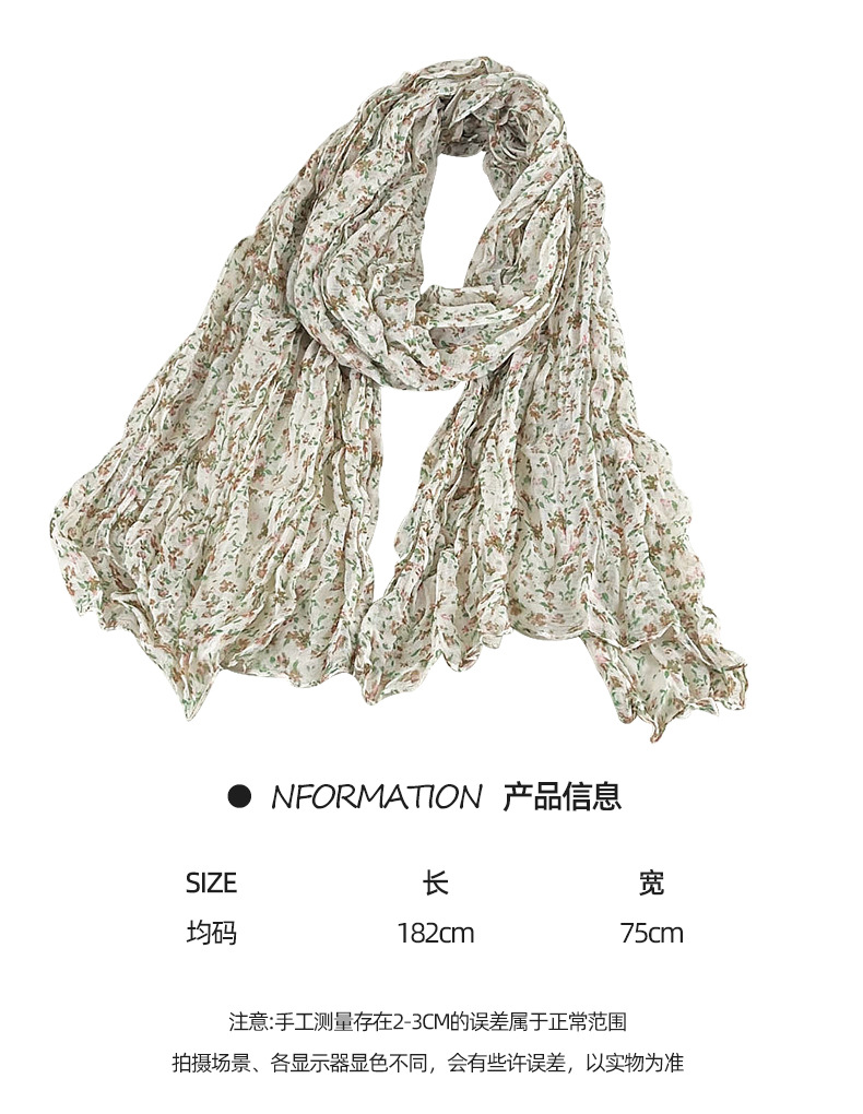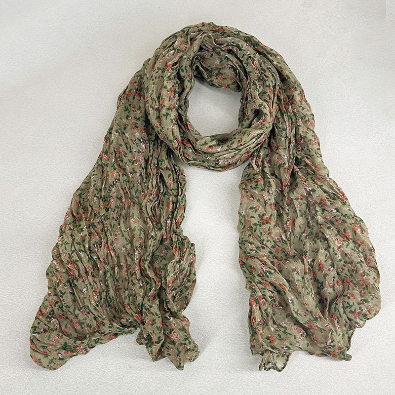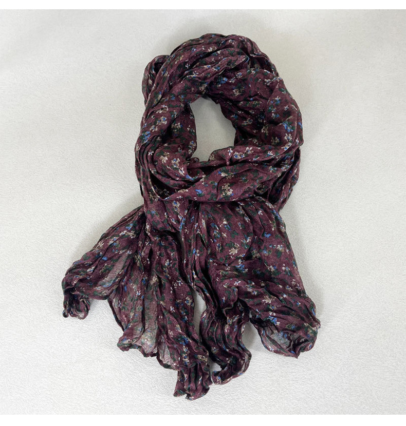 포레스트 스타일의 주름진 꽃무늬 스카프, 산뜻한 목가적 스타일의 면 및 린넨 스카프, 여행복, 달콤한 여행용 숄스토어 가기