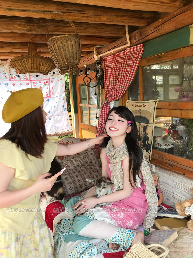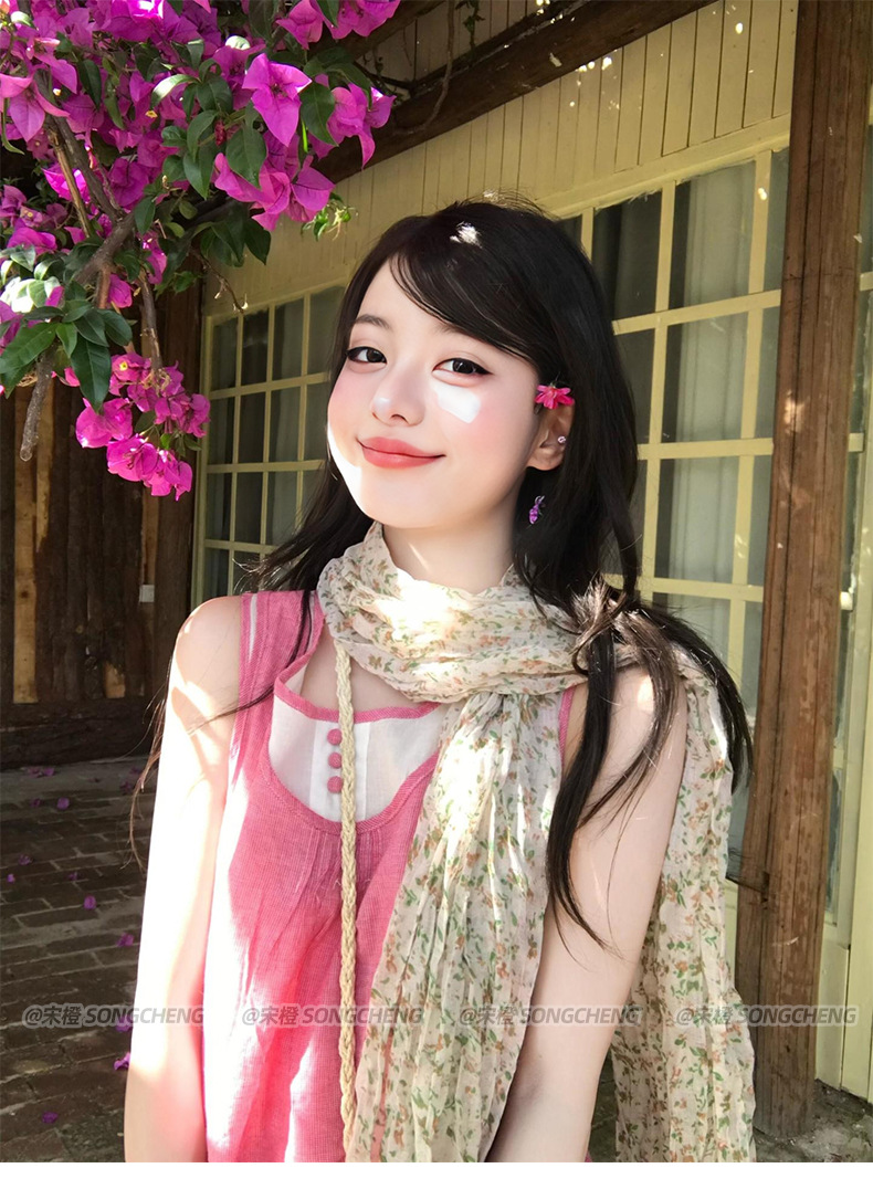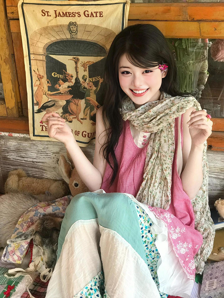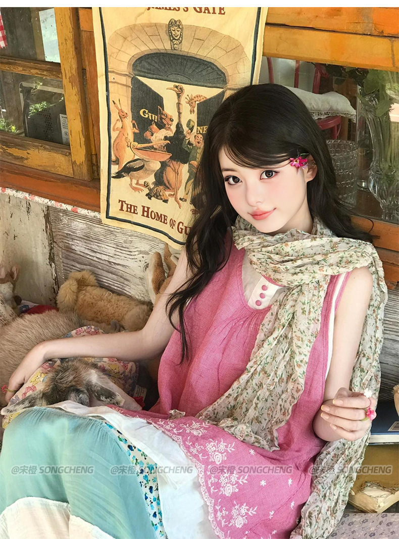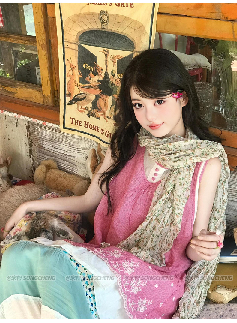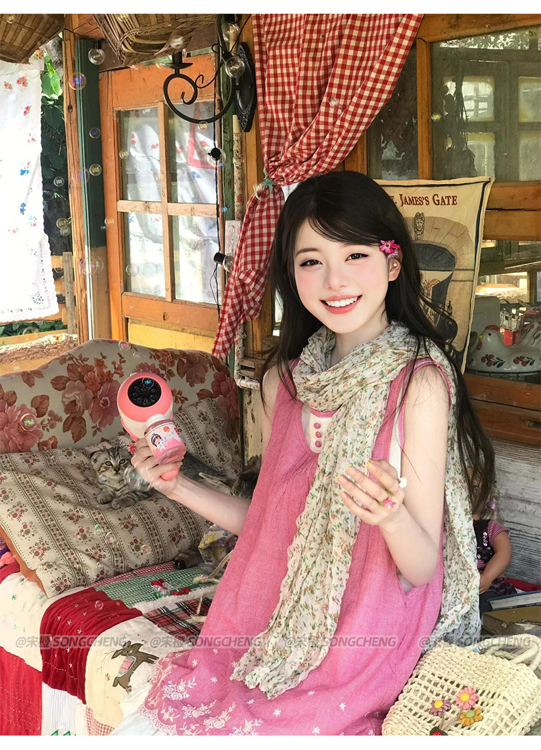 포레스트 스타일의 주름진 꽃무늬 스카프, 산뜻한 목가적 스타일의 면 및 린넨 스카프, 여행복, 달콤한 여행용 숄스토어 가기