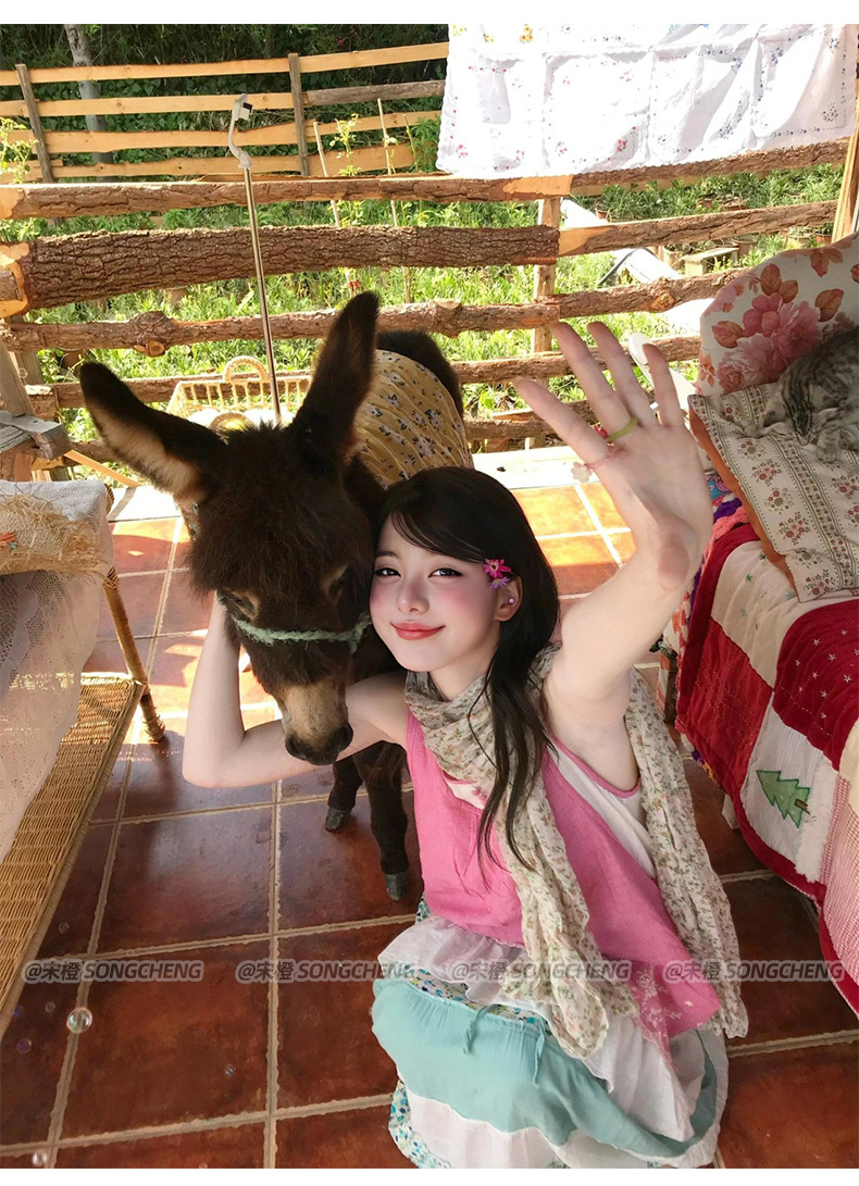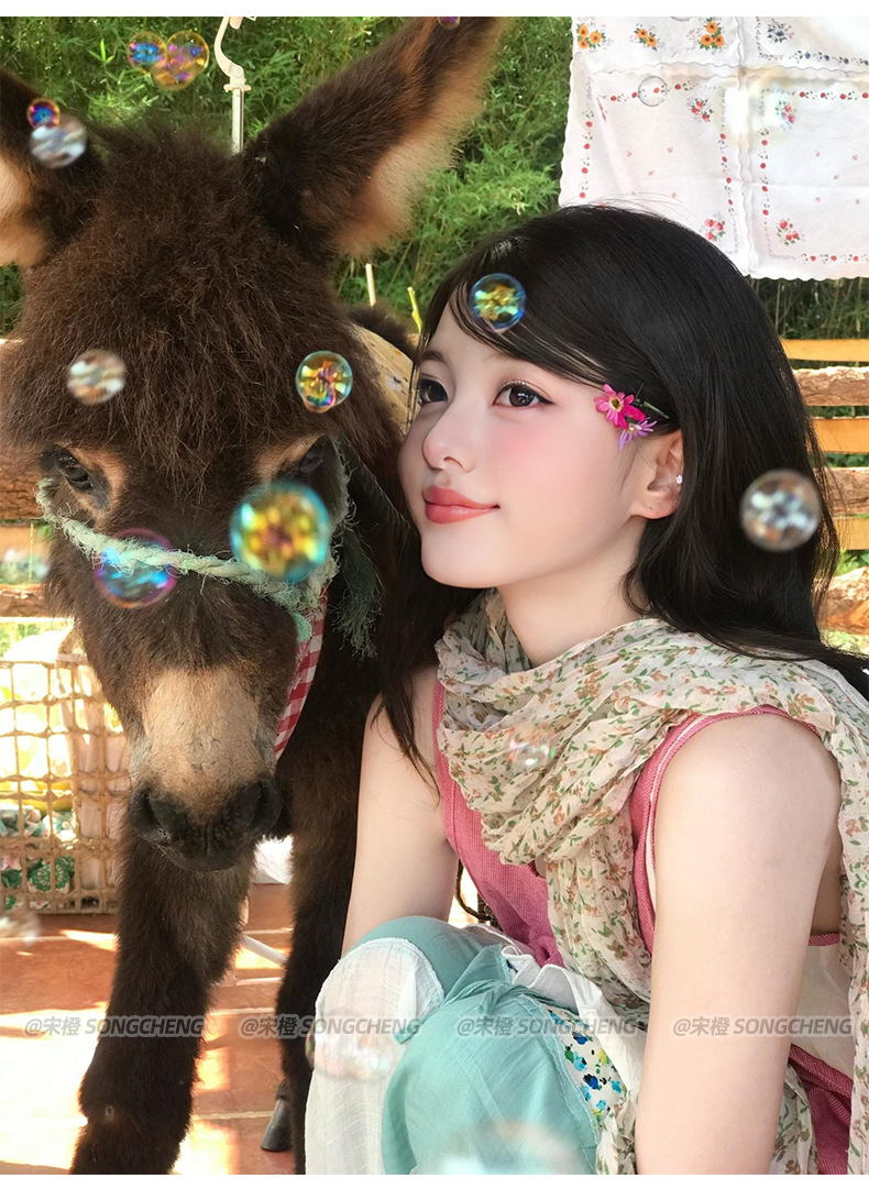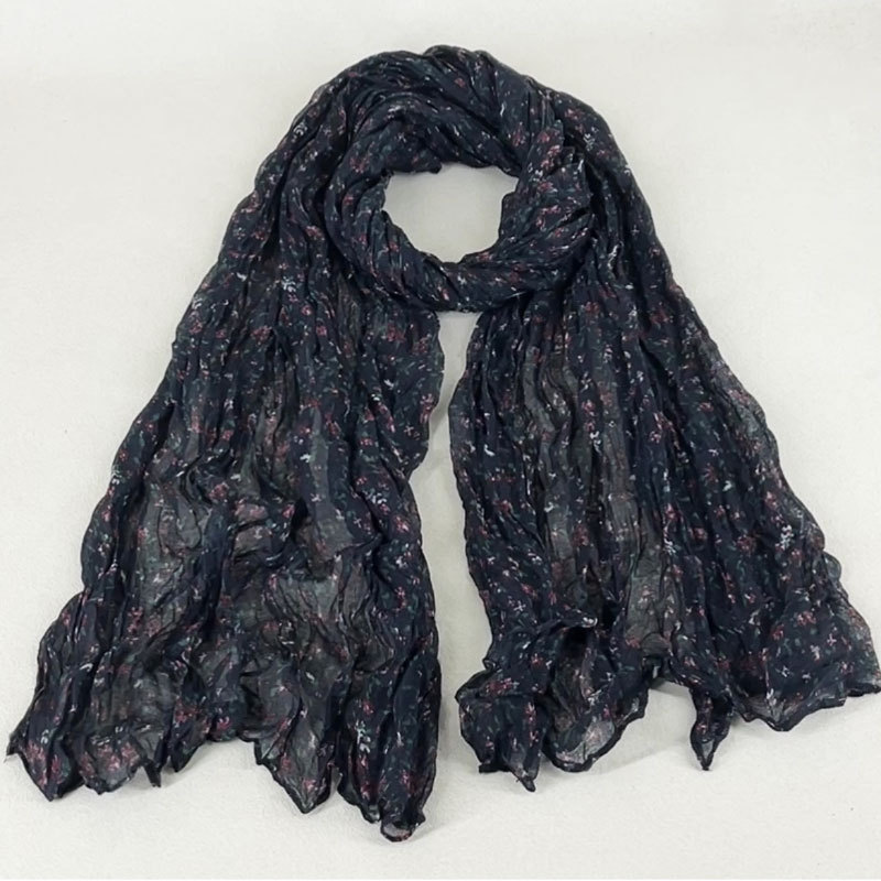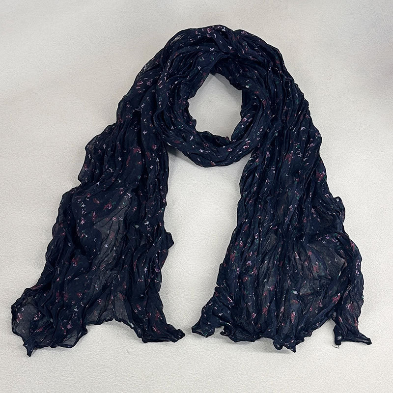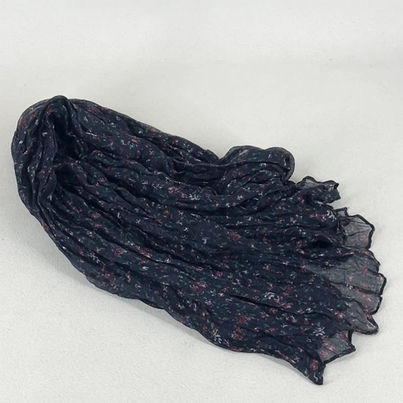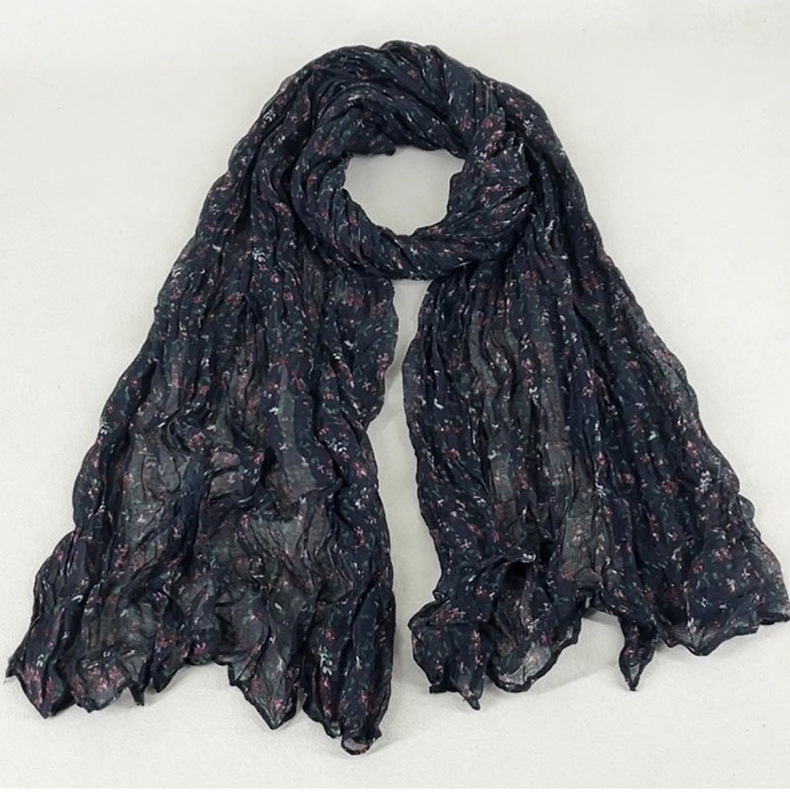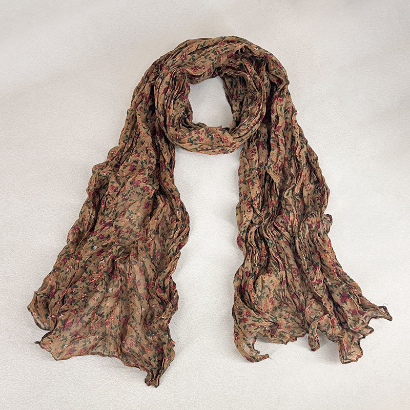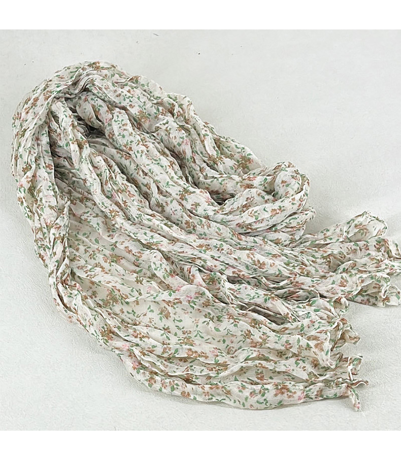 포레스트 스타일의 주름진 꽃무늬 스카프, 산뜻한 목가적 스타일의 면 및 린넨 스카프, 여행복, 달콤한 여행용 숄