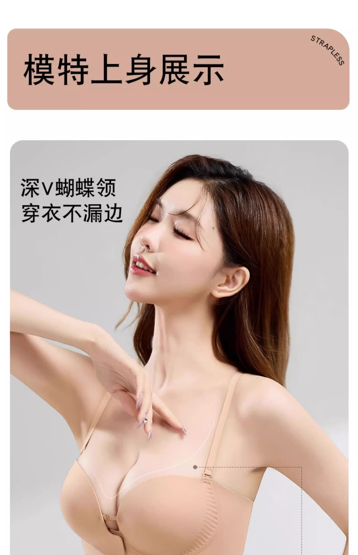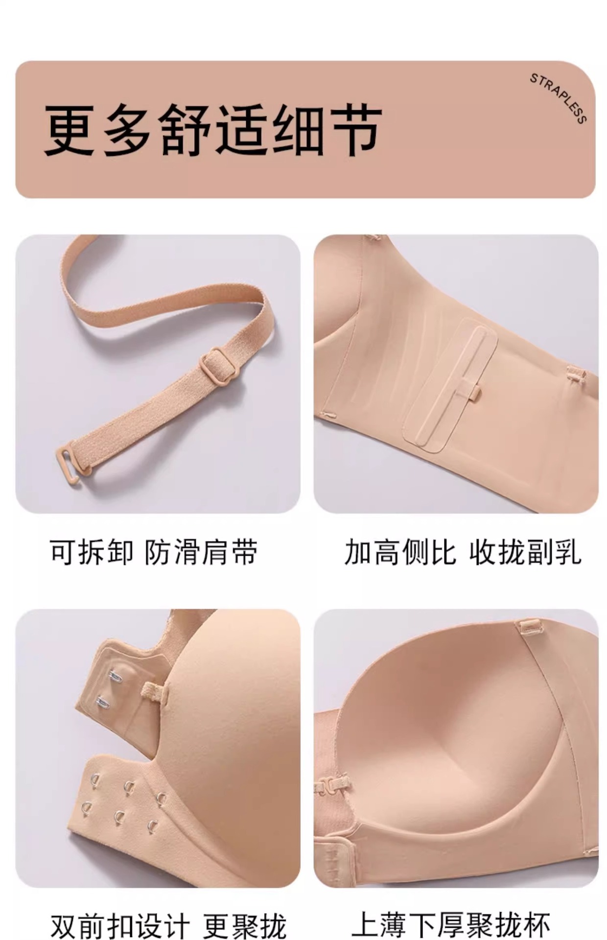 여성용 끈이 없는 조절 가능한 앞 버튼 속옷, 보이지 않는 흔적 없음, 작은 가슴이 더 커 보이고 미끄럼 방지, 아름다운 등 브라, 면스토어 가기