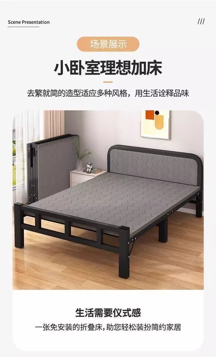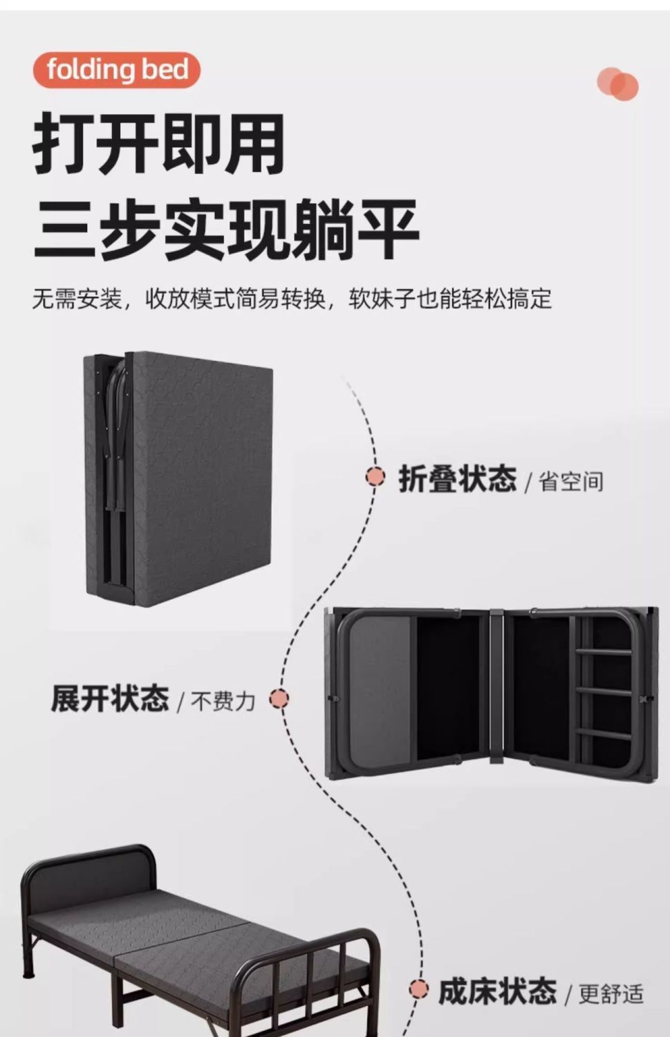 접이식 침대 싱글 침대 홈 오피스 점심 시간 간단한 성인 철제 프레임 침대 휴대용 임대 주택 더블 하드 침대스토어 가기