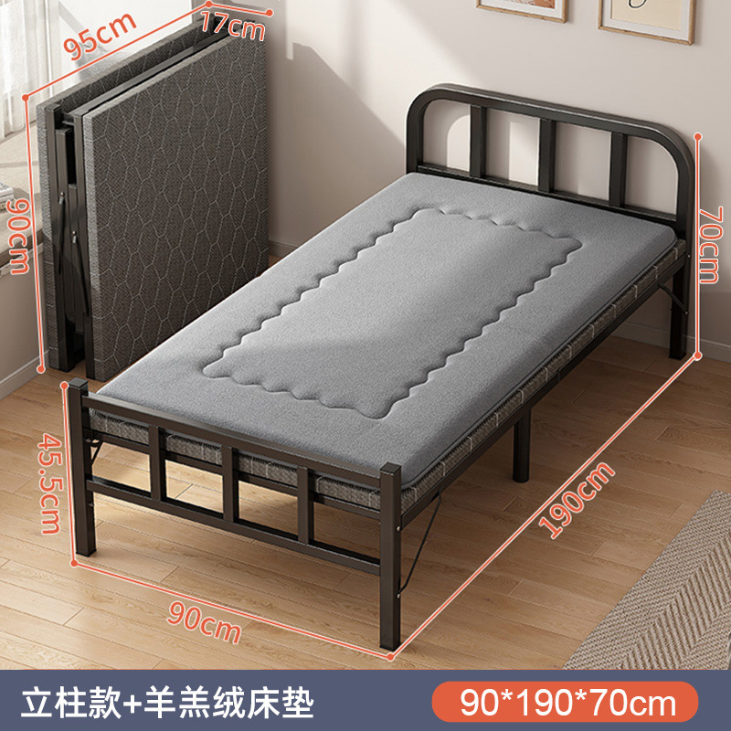 접이식 침대 싱글 침대 홈 오피스 점심 시간 간단한 성인 철제 프레임 침대 휴대용 임대 주택 더블 하드 침대