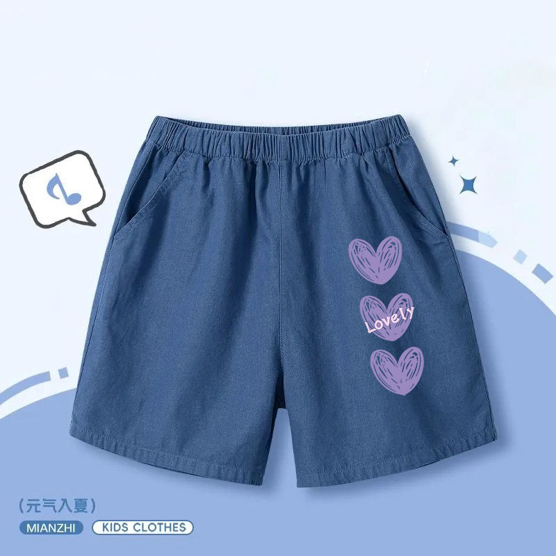• 데님 아이스 실크 반바지: 퍼플 하트 다크 블루