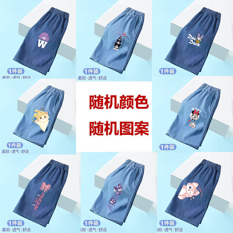 아동용 바지, 여름용 얇은 스타일, 아이스 실크 데님 여아용 반바지, 중대형 아동용 가볍고 스포티한 다용도 5부 바지스토어 가기