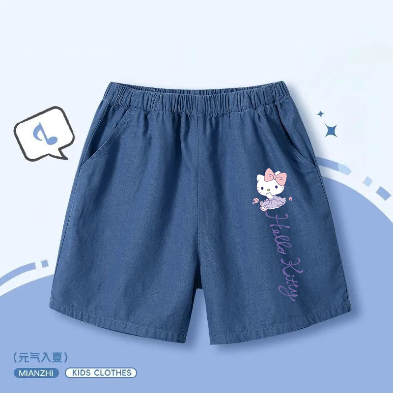• 데님 아이스 실크 반바지: 귀여운 다크 블루