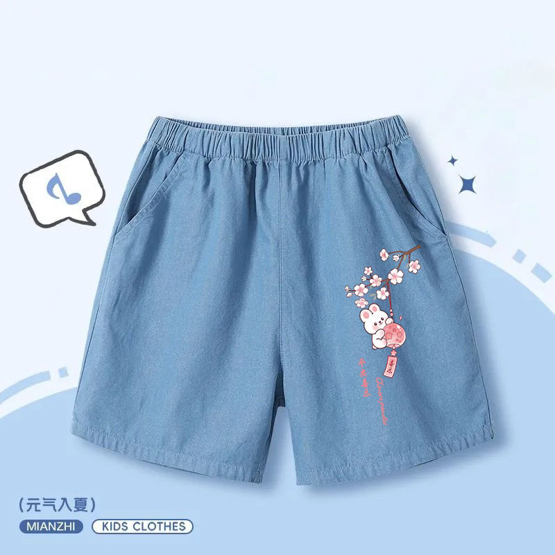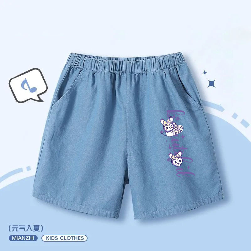 아동용 바지, 여름용 얇은 스타일, 아이스 실크 데님 여아용 반바지, 중대형 아동용 가볍고 스포티한 다용도 5부 바지