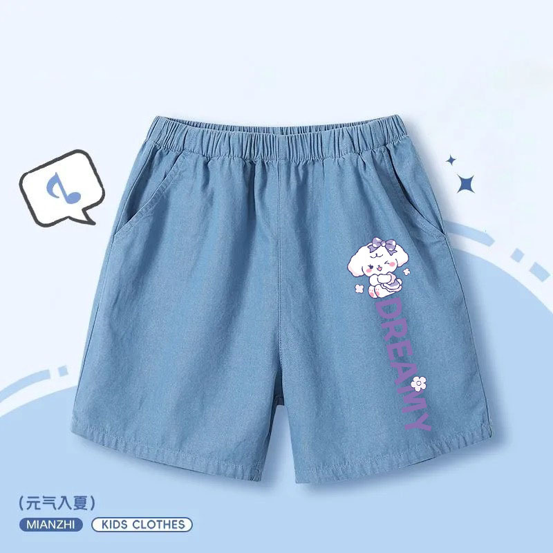 • 데님 아이스 실크 반바지: 윙크하는 개 라이트 블루